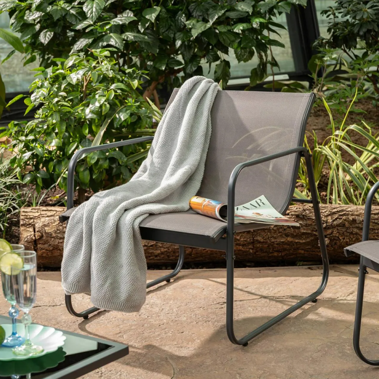 Spotkanie na świeżym powietrzu? Z kompletem ogrodowym SABIA każdy usiądzie wygodnie, ciesząc się promieniami słońca.