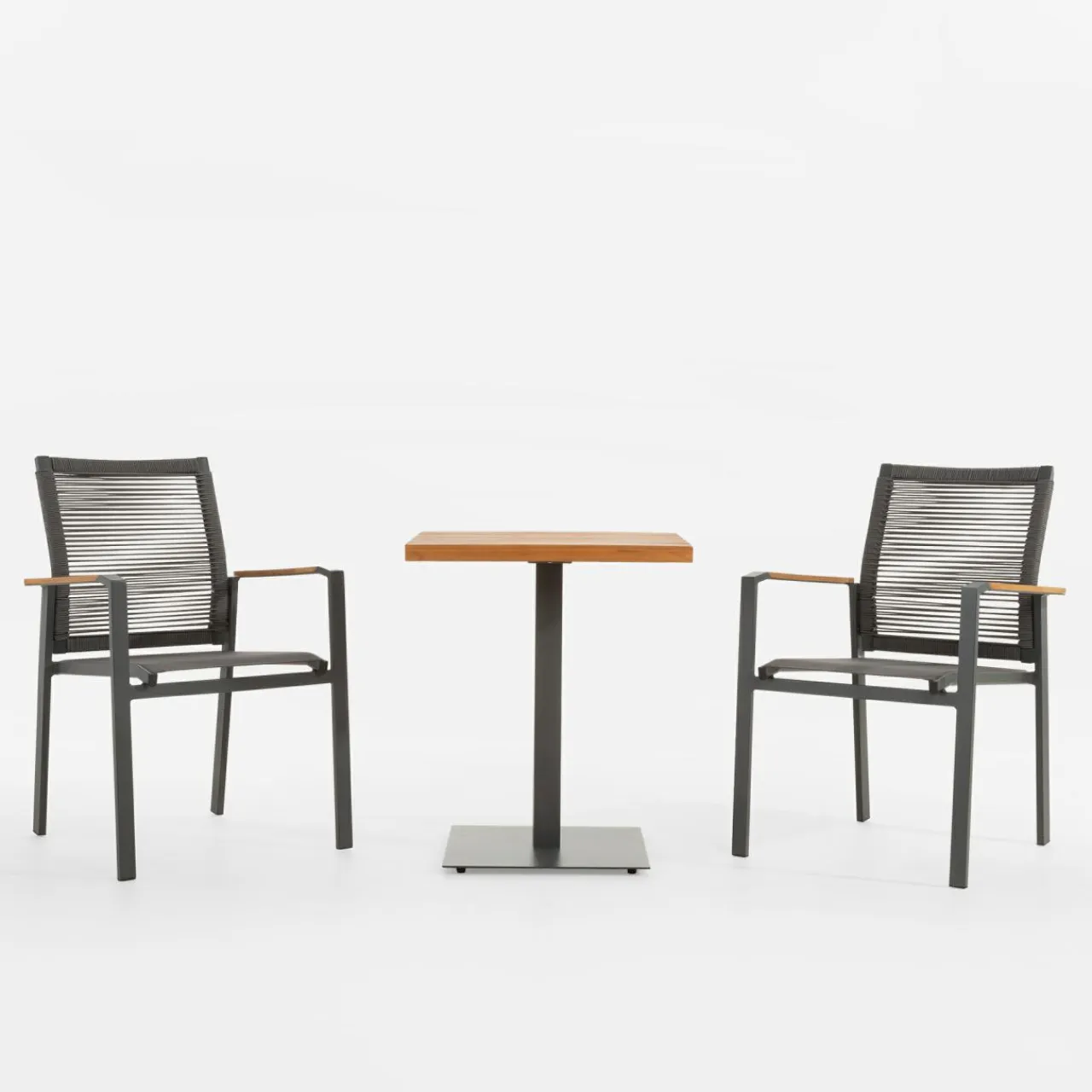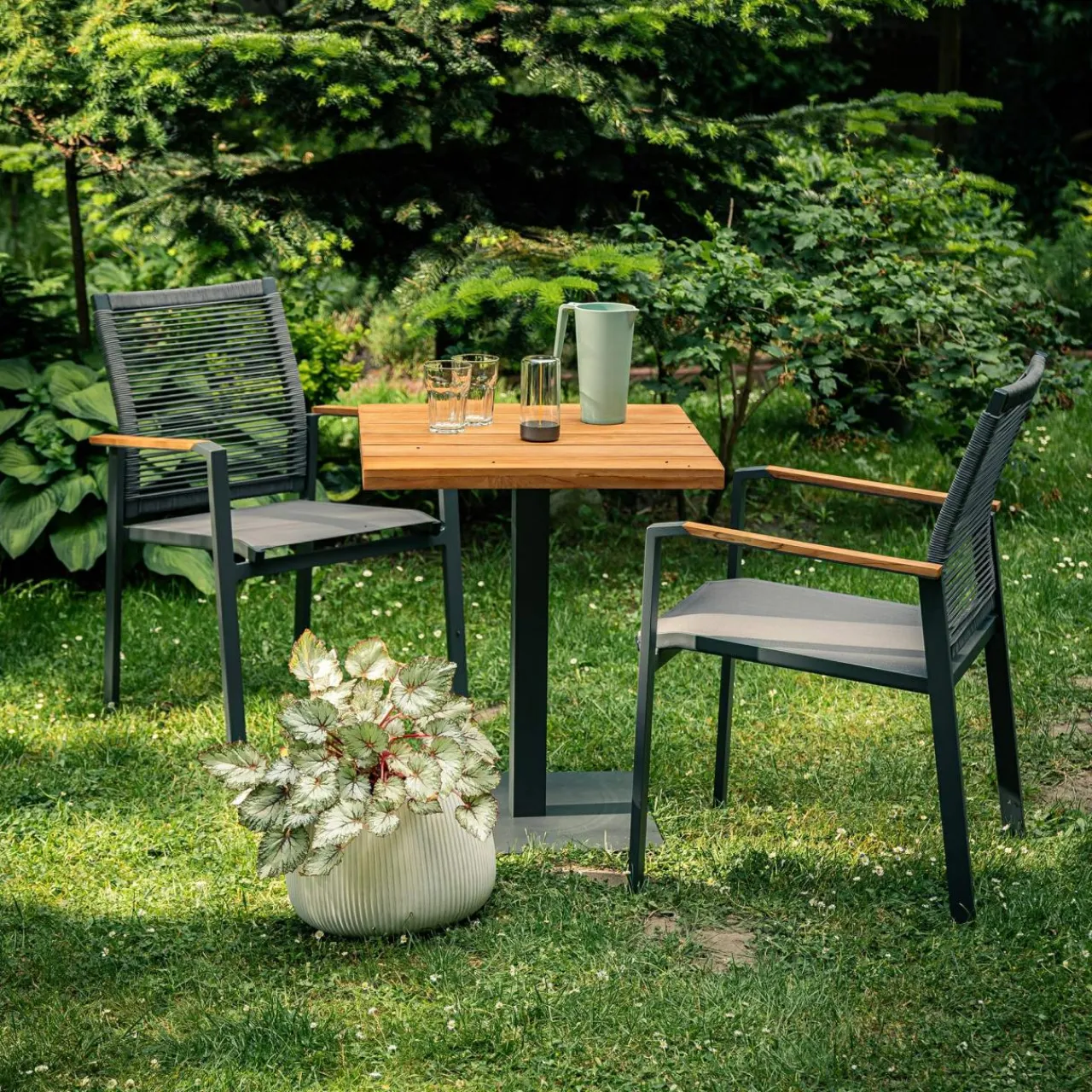 Komplet ogrodowy MINDA to świetne rozwiązanie dla dwojga. Każde z Was usiądzie przy stoliku, w promieniach słońca lub pod cieniem parasola.