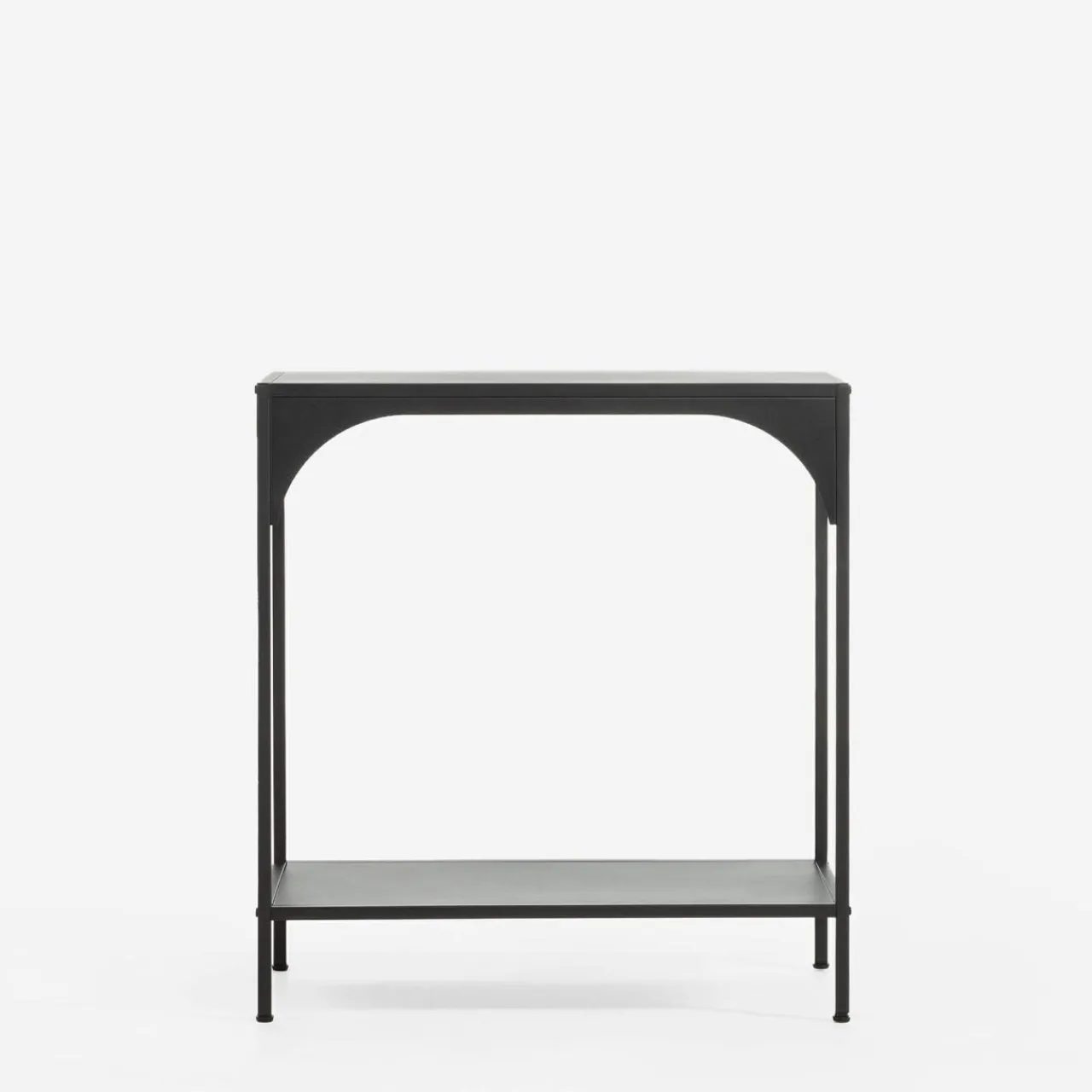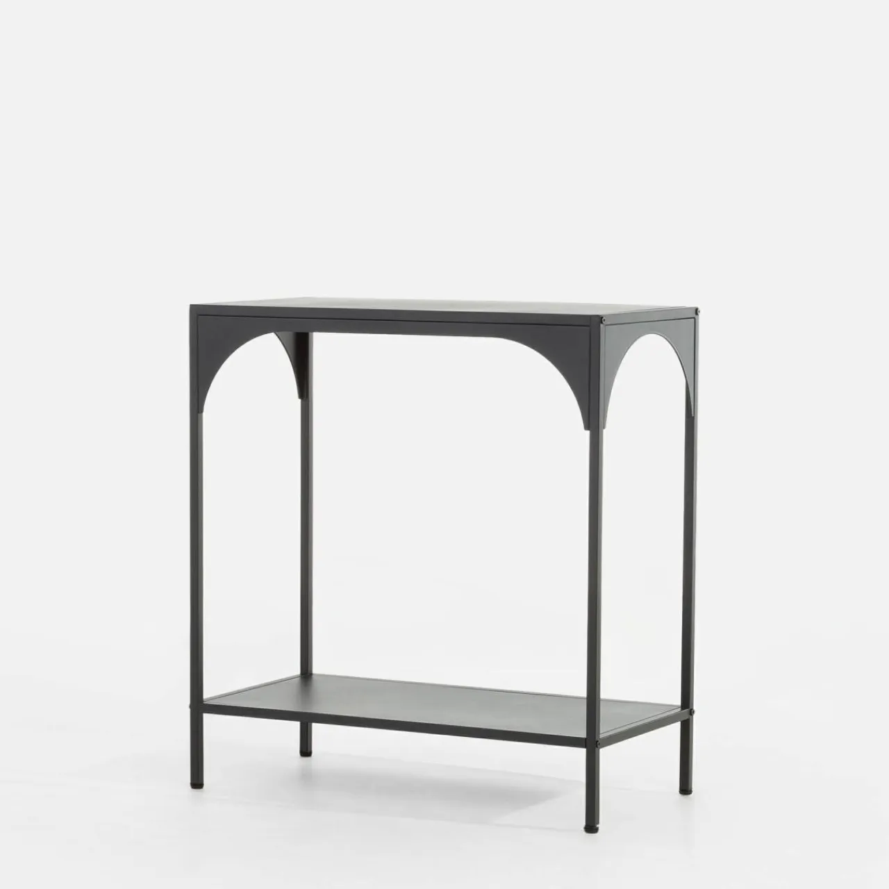 Czarna konsola HOCCA dzięki niewielkim wymiarom zajmuje mało miejsca, a jej uniwersalny design sprawdzi się w różnych aranżacjach.