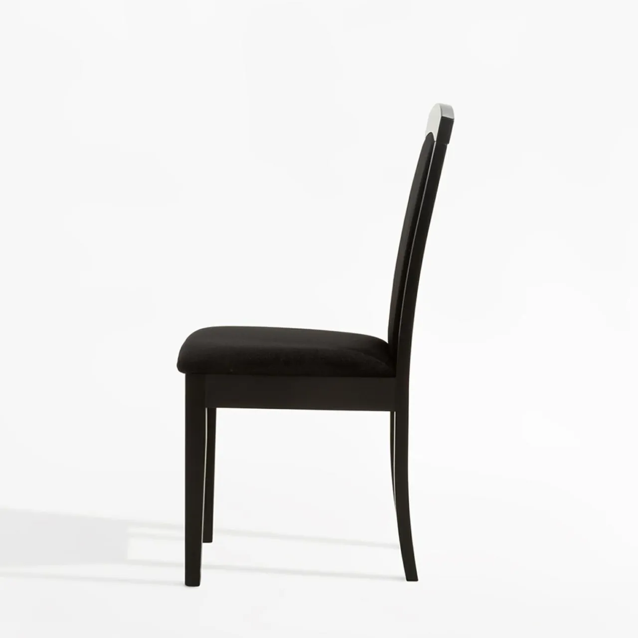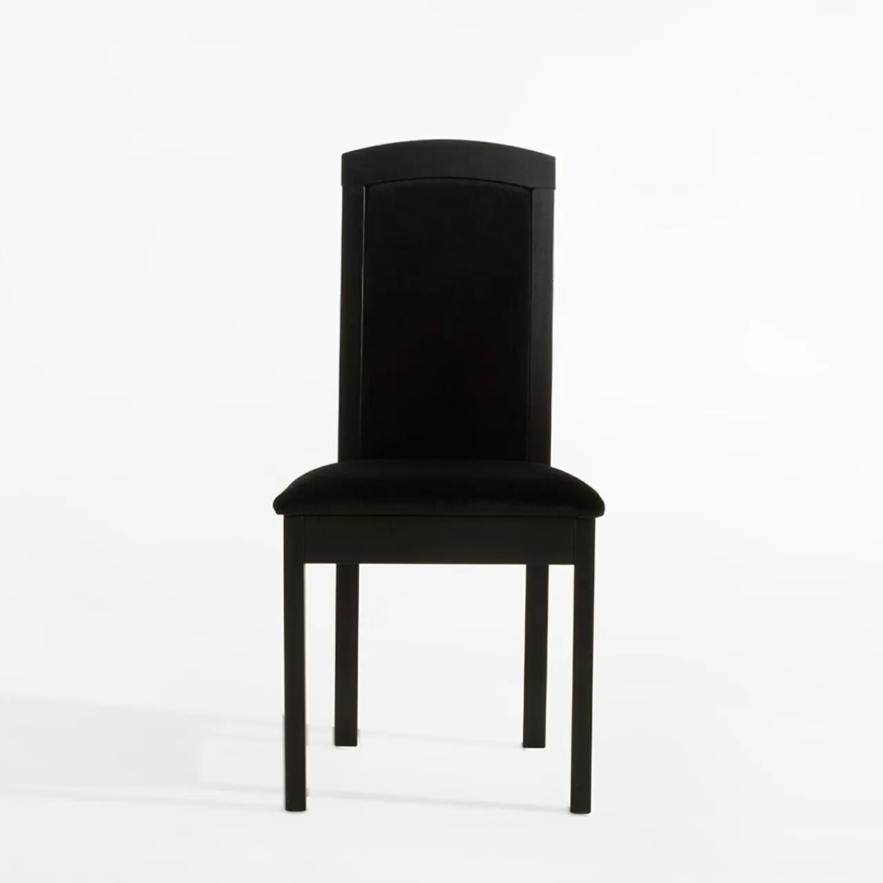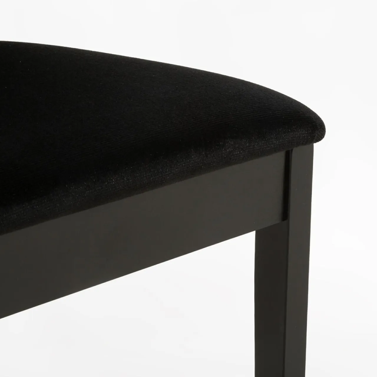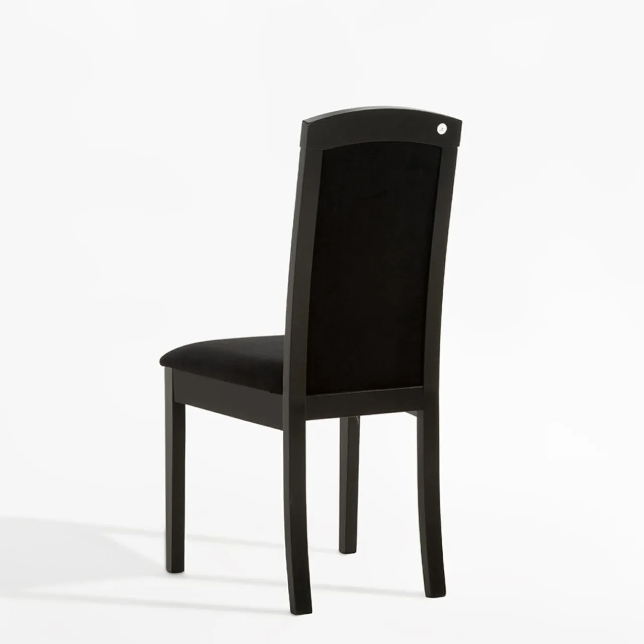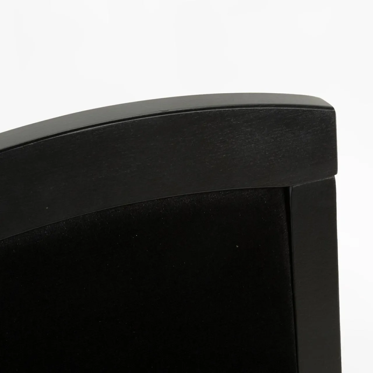 - Stelaż krzesła wykonany jest z naturalnego drewna bukowego wybarwionego na głęboki kolor czarny łączący się harmonijnie z czarnym welurem.