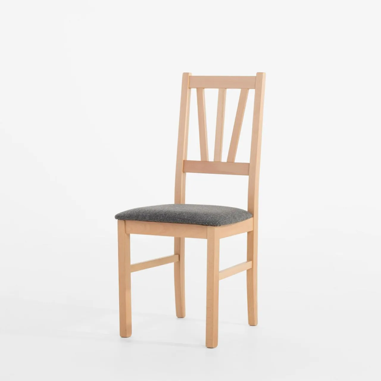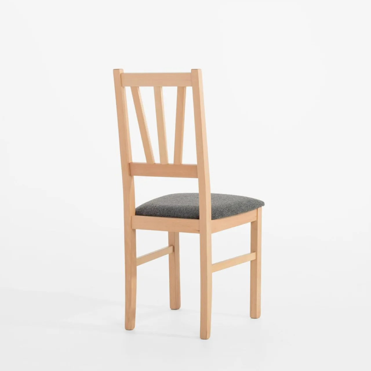 Drewniane krzesło z szarą tapicerką