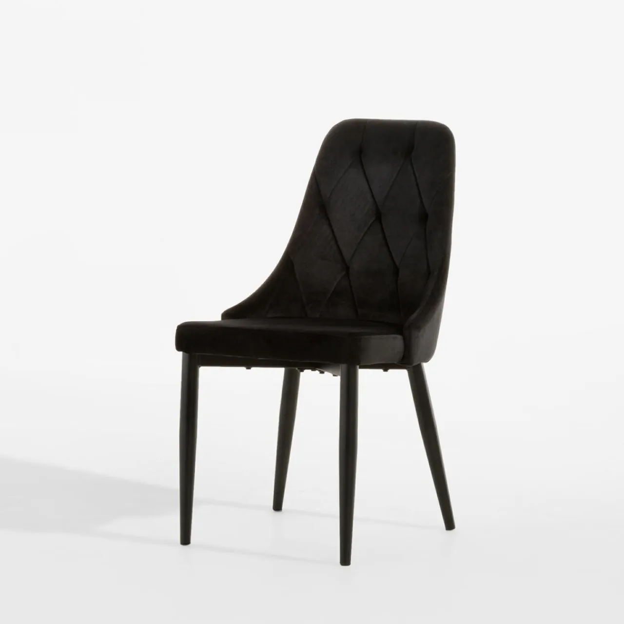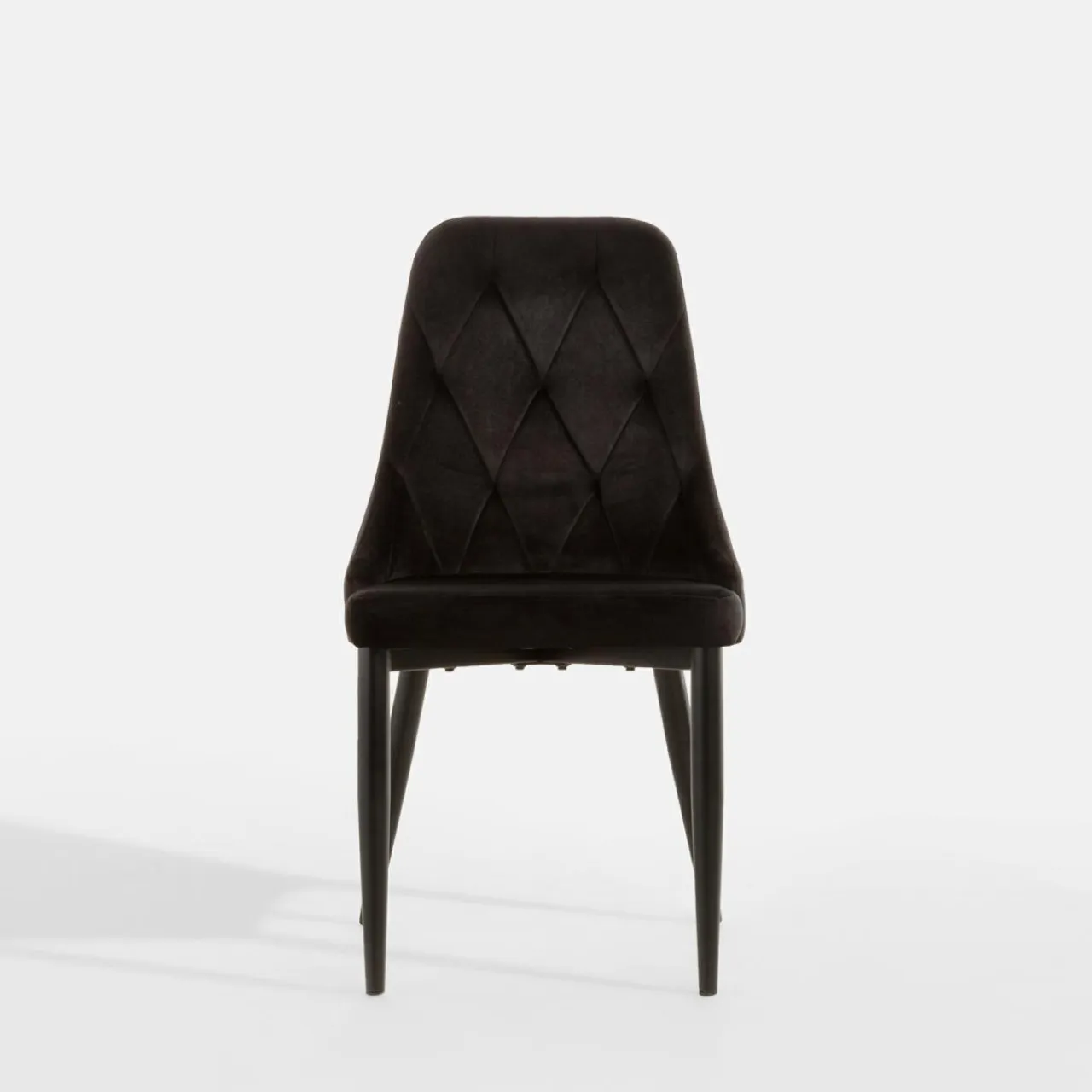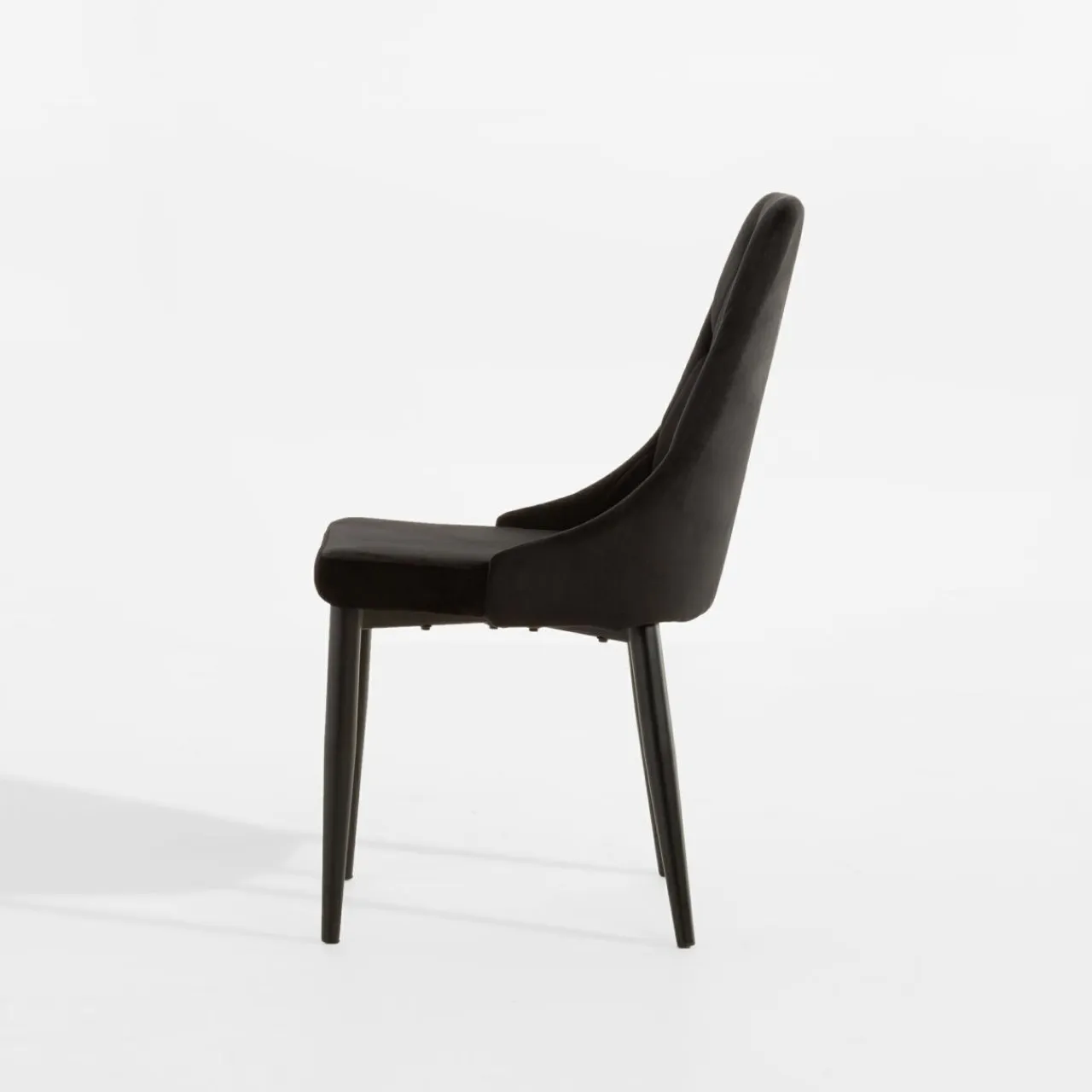 Krzesło HARBORE cechuje całkowicie czarne wybarwienie zarówno stalowego stelaża jak i siedziska wykończonego miękkim welurem. Krzesło wpisze się w nowoczesne i loftowe wnętrza. Będzie świetnym tłem dla innych kolorów, skomponuje się z niemal każdym odcieniem stołu.