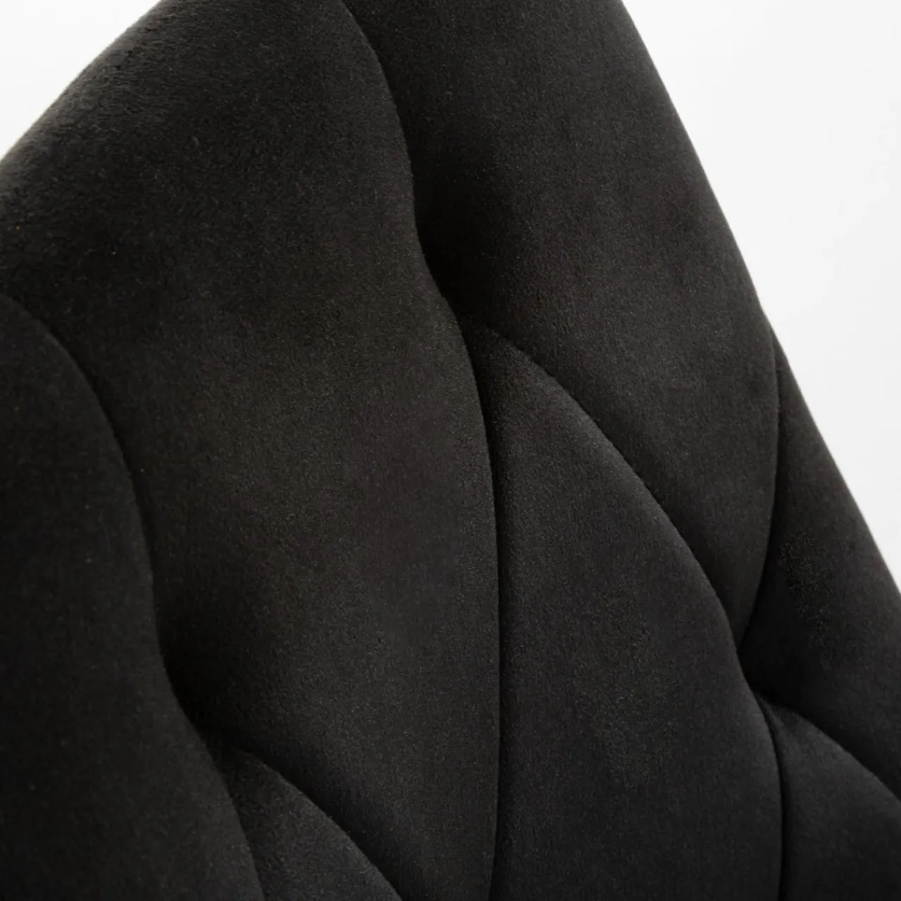 - Krzesło wykończono miękkim welurem zarówno na siedzisku, jak i oparciu, co zwiększa miłe doznania podczas siedzenia.