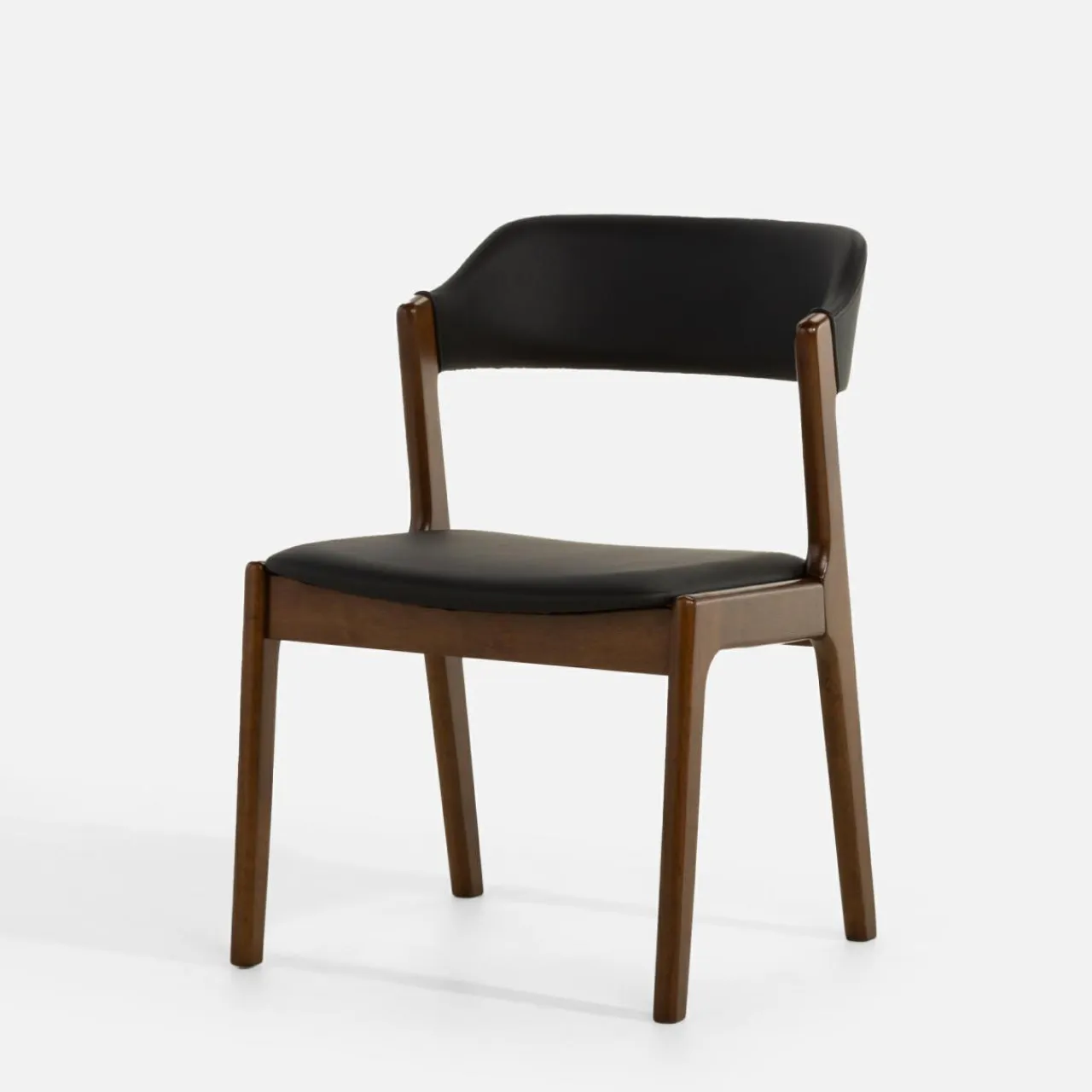 Designerskie krzesło RILMONO inspirowane projektami z lat 60. będzie stanowić prawdziwą ozdobę jadalni. Czekoladowe wybarwienie drewna i czarna ekoskóra sprawią, że krzesło stworzy udany zestaw z ciemnym stołem w jadalni.