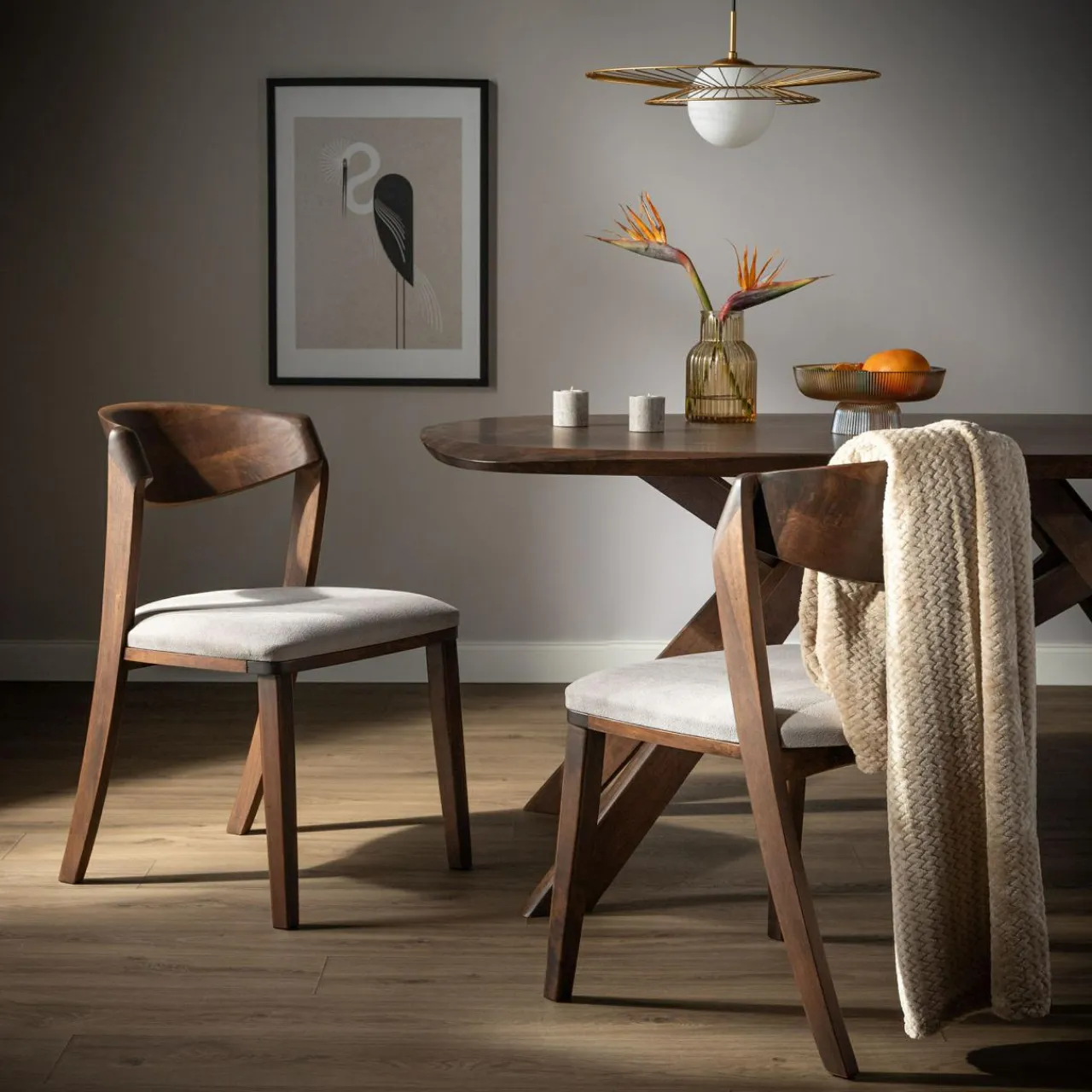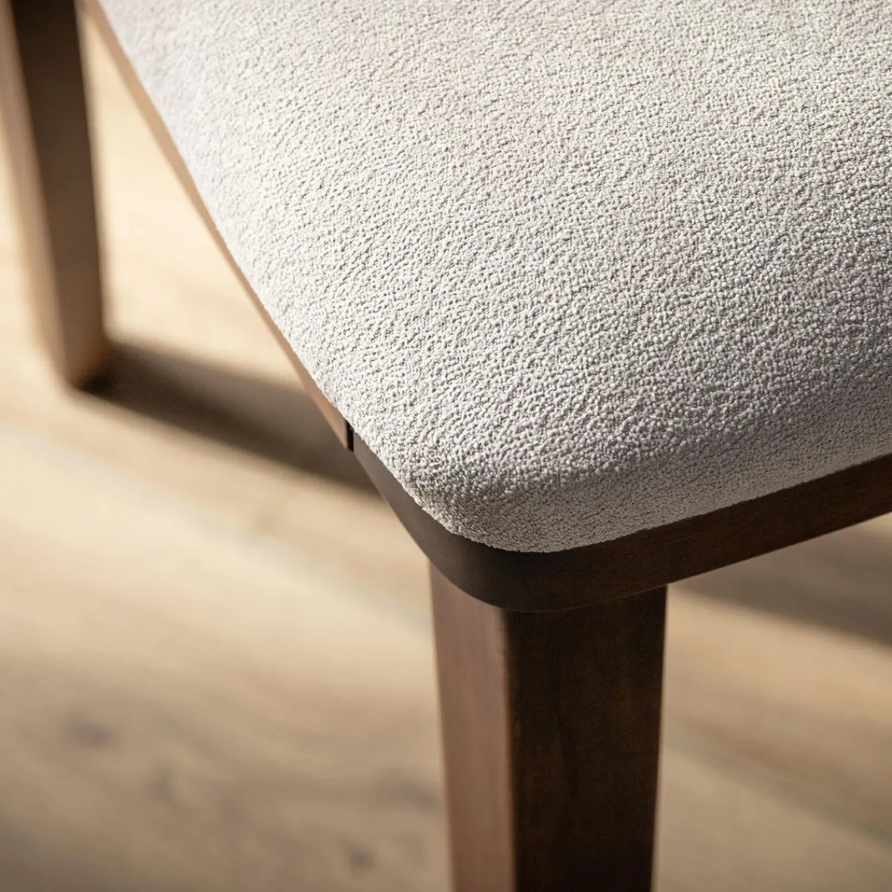 • Konstrukcja z naturalnego drewna – oparcie i stelaż wykonane z litego drewna kauczukowego z lakierem w kolorze orzecha, dodają ciepła każdemu wnętrzu.