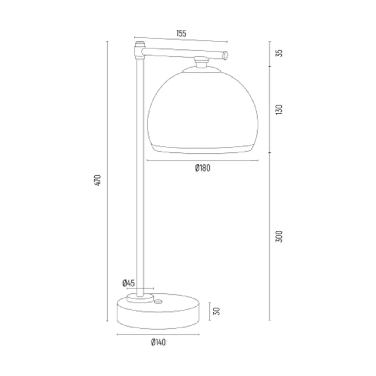 Posiada okrągłą podstawą od której biegnie ramię zgięte w literę „L”, które zostało zwieńczone mlecznobiałym kloszem z obwódką przy krawędzi.