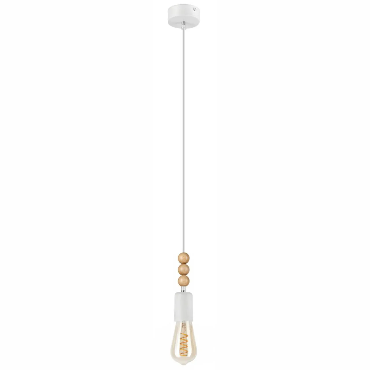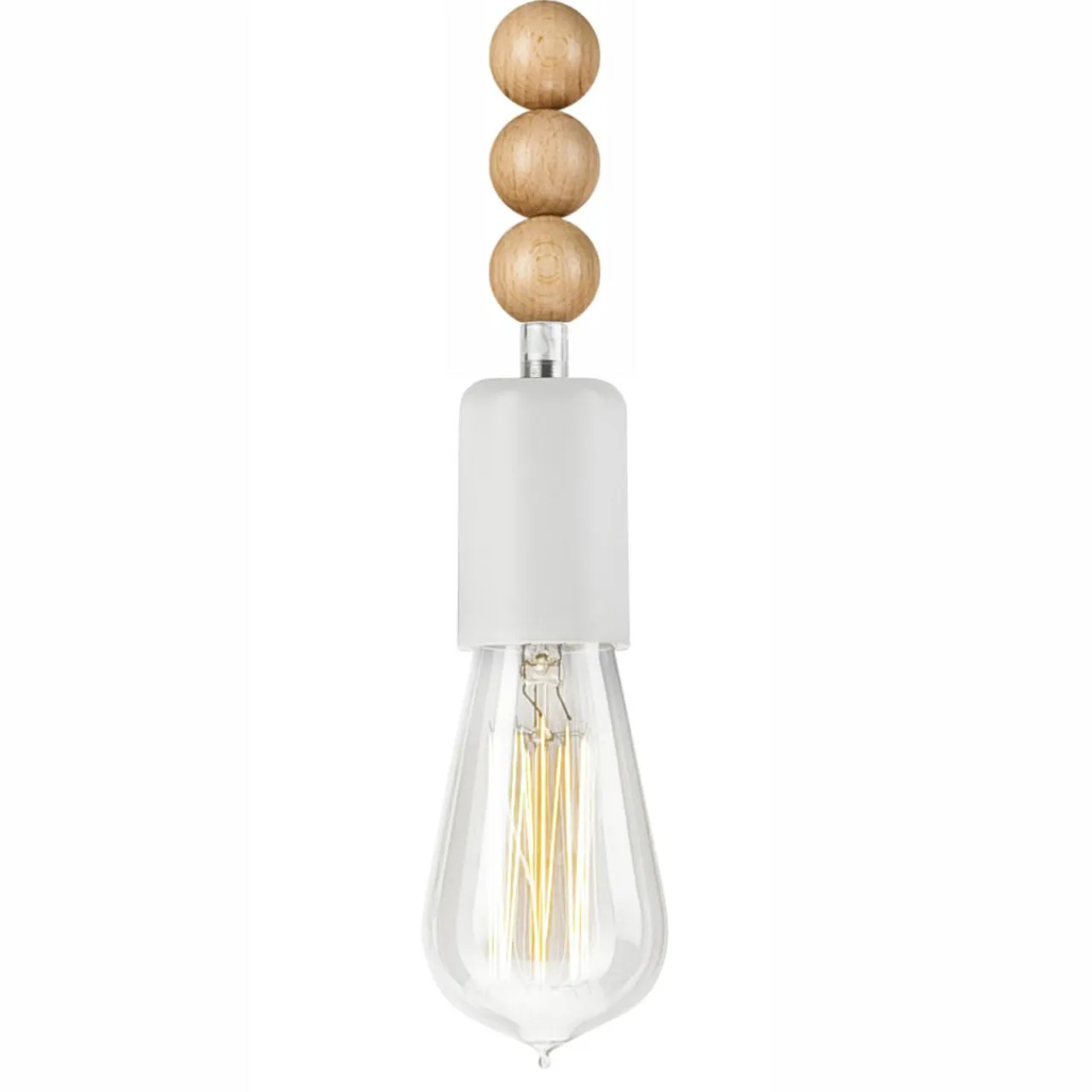 - Nietypowy wygląd lampy podkreśla jej wyjątkowość – 3 drewniane, ozdobne kule przy oprawie to niewielki, lecz oryginalny dodatek.