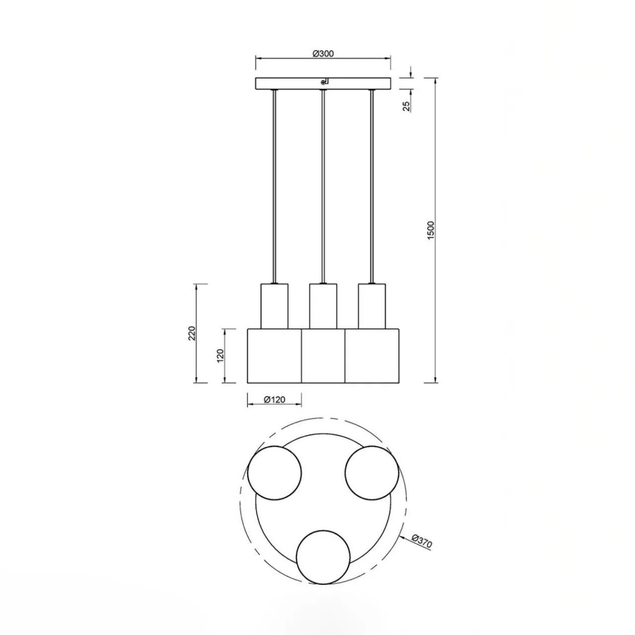 - 3 źródeł światła – każdy klosz wyposażony w oprawę E27, zapewnia równomierne oświetlenie na większej przestrzeni.
