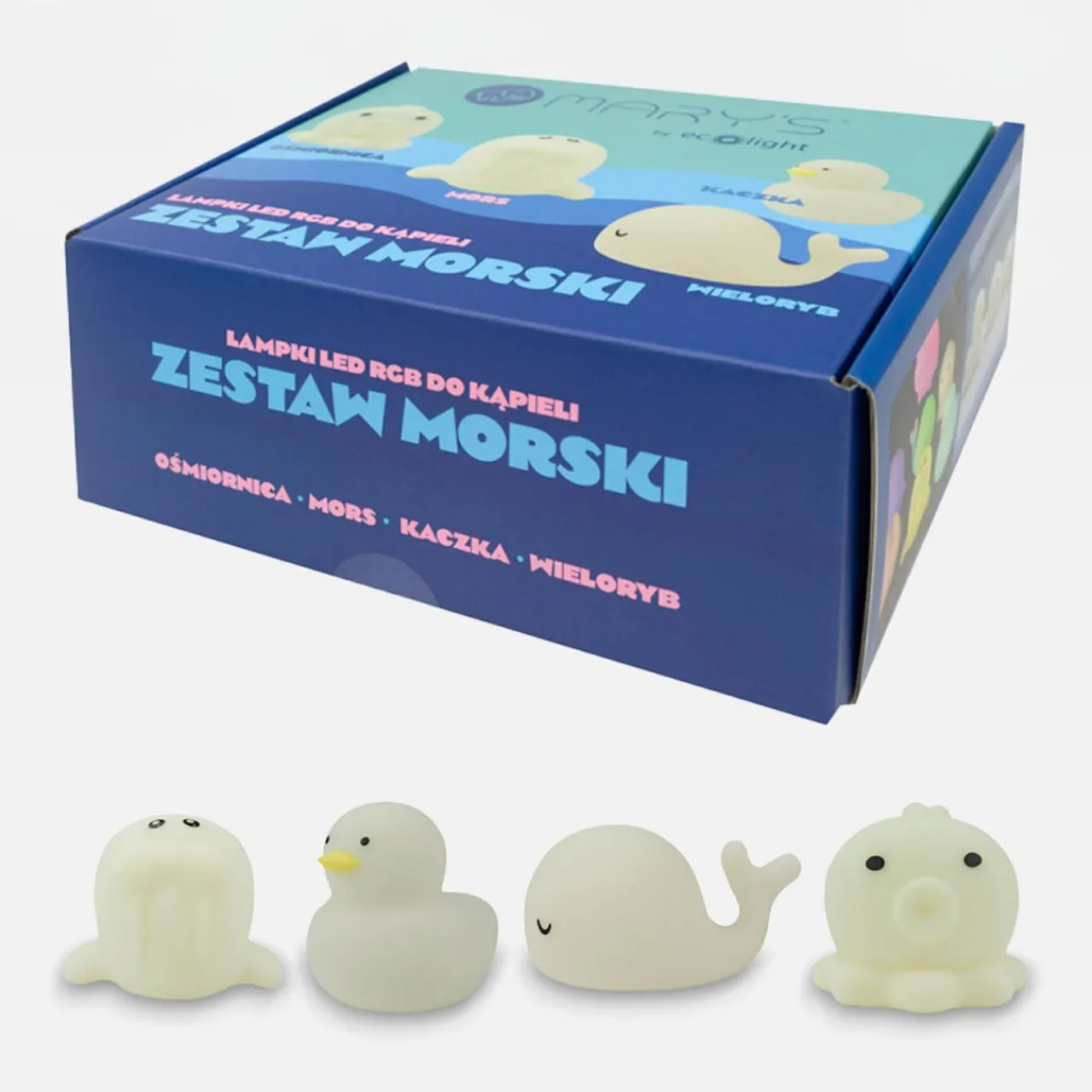 Stwórz własną historię wraz z 4 lampkami z ZESTAWU MORSKIEGO. Niejedna kąpiel może dzięki nim stać się przygodą wypełnioną sztormami, walką z krakenem lub poszukiwaniem skarbu.