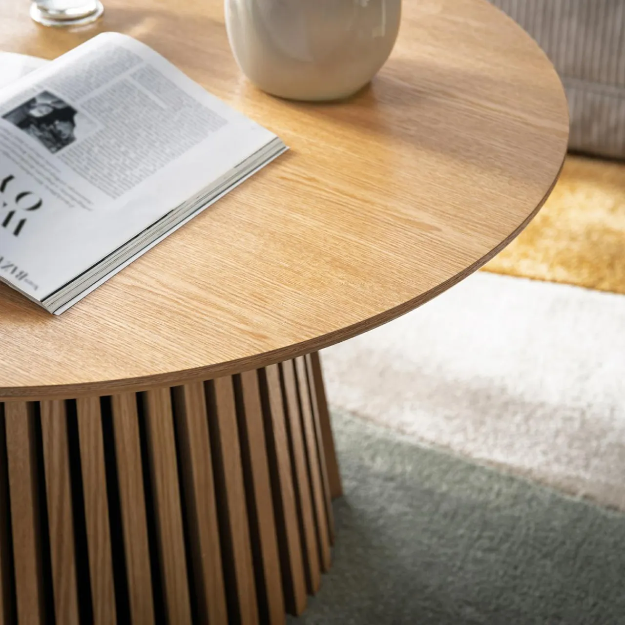 Ława LIRANDANO to okrągły stolik kawowy, który dzięki swoim kompaktowym wymiarom i wykończeniu idealnie wpasuje się do salonu, tworząc przytulną atmosferę.
