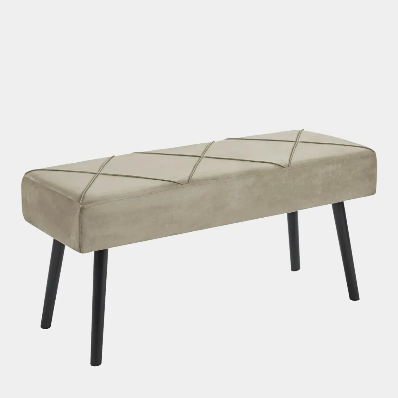 Szukasz eleganckiej ławki do sypialni urządzonej w stonowanych barwach? Spodoba CI się ławka KASKADE z beżową tapicerką i nowoczesnymi przeszyciami na siedzisku.