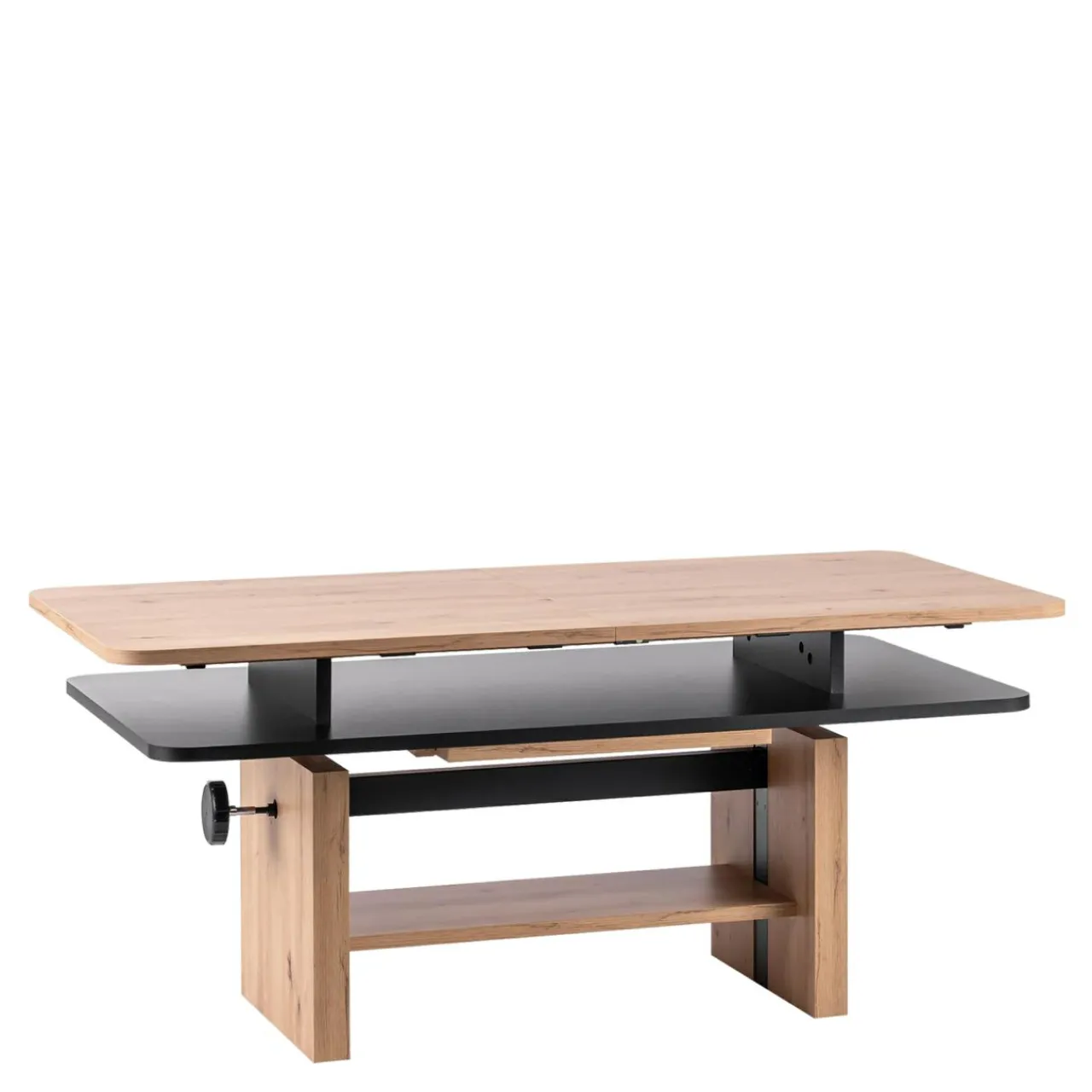Ławostół TARIUS w sprawny sposób zmieni Twój pokój dzienny w jadalnię. Po prostu podnieś blat za pomocą korbki i rozsuń go, żeby cieszyć się stołem, który bez problemu pomieści 6 osób.