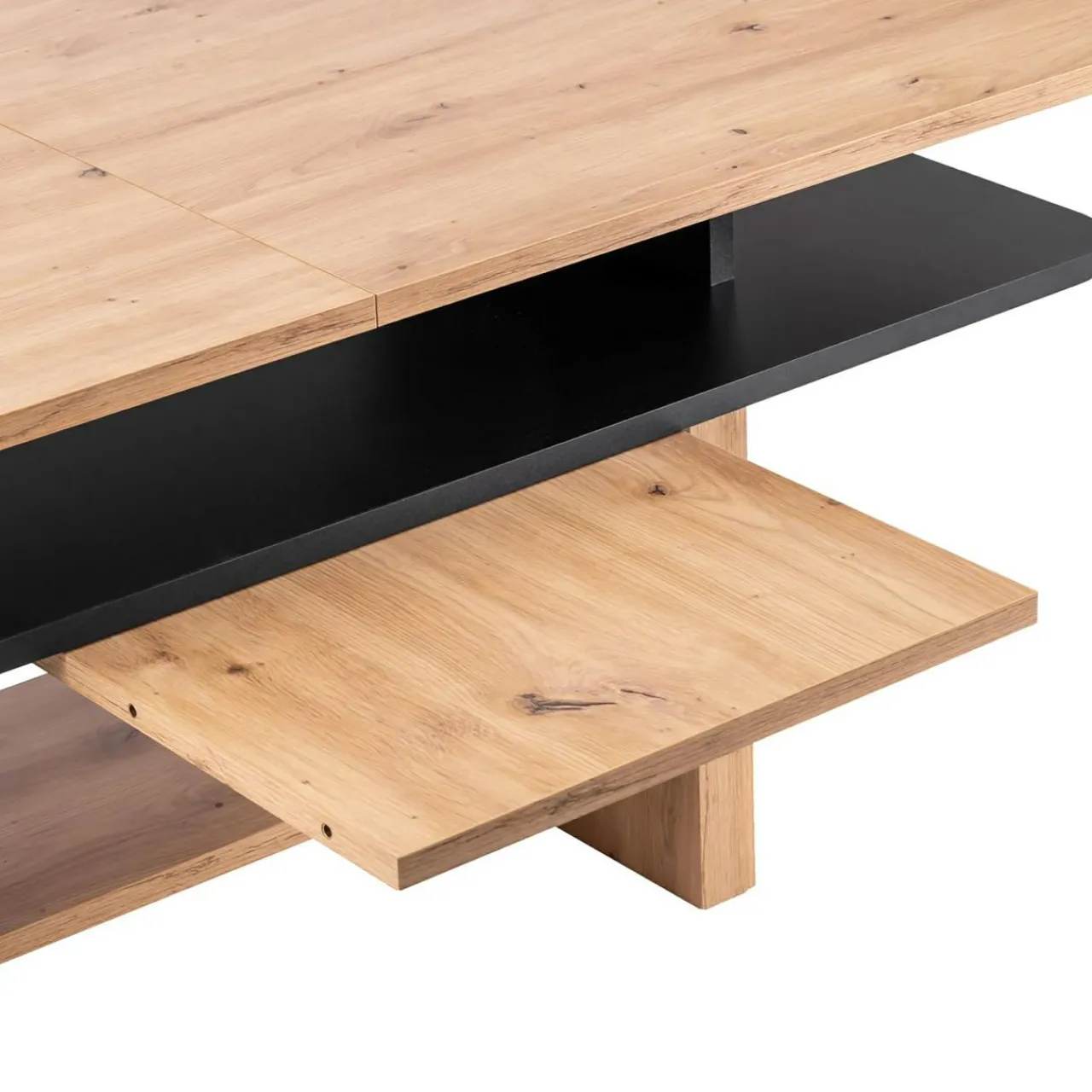 - Dzięki wysokiemu umieszczeniu półki łatwo posprzątasz podłogę pod ławą.