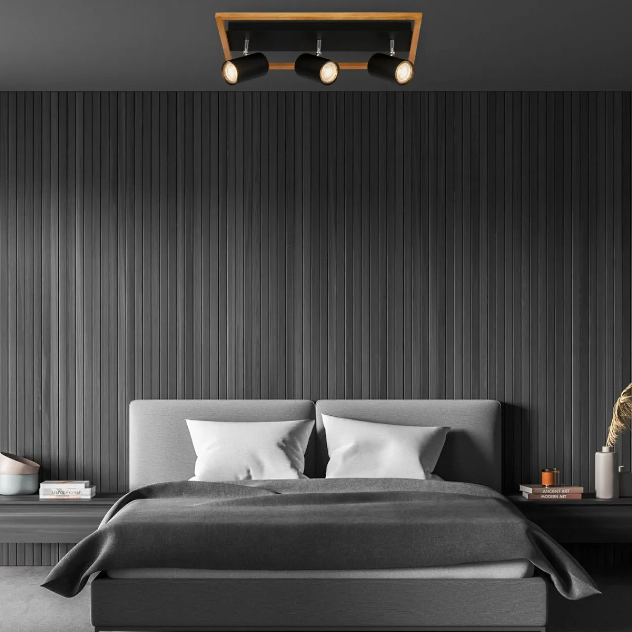 - Drewniane elementy z charakterystycznymi przebarwieniami i widocznymi słojami wprowadzają element naturalności do nowoczesnego designu lampy.