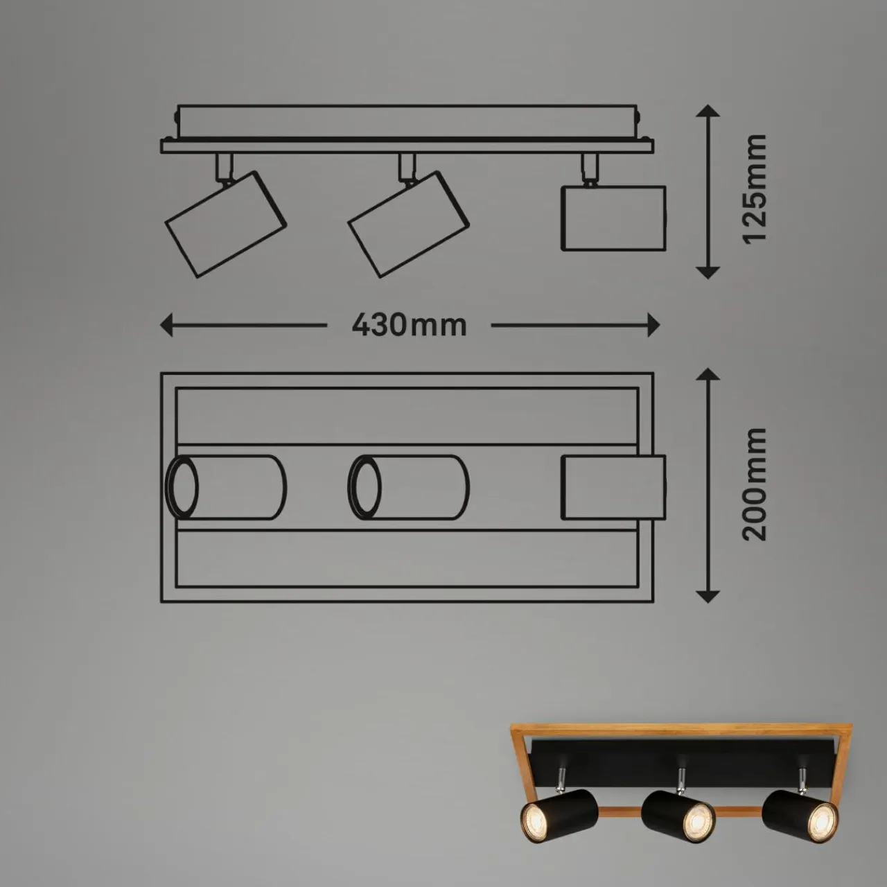 Listwa FREY posiada oprawę dla 3 żarówek LED typu GU10 o mocy maksymalnej 9W.
