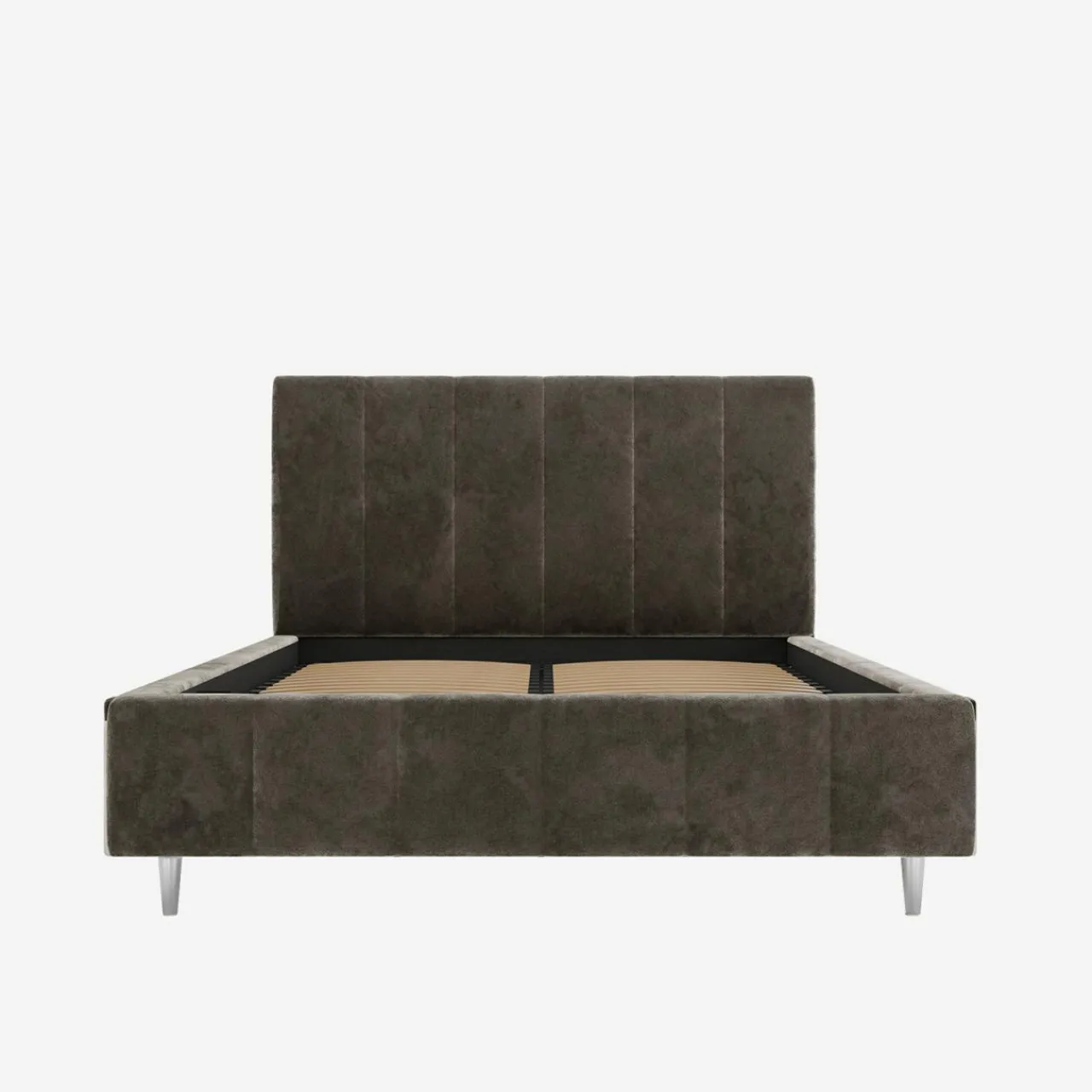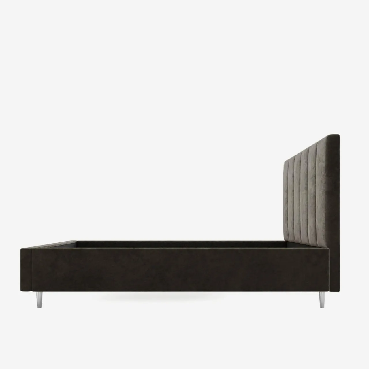 Łóżko STELLA pokryto miękką, brązową tkaniną, która doda ciepła do Twojej sypialni. Oprzyj się na miękkim wezgłowiu i złap oddech przed snem.