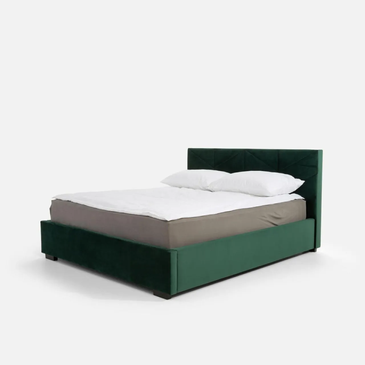 - Łóżko jest wyposażone w tapicerowaną ramę oraz stelaż, które stworzą komfortową powierzchnię spania dla 2 osób.