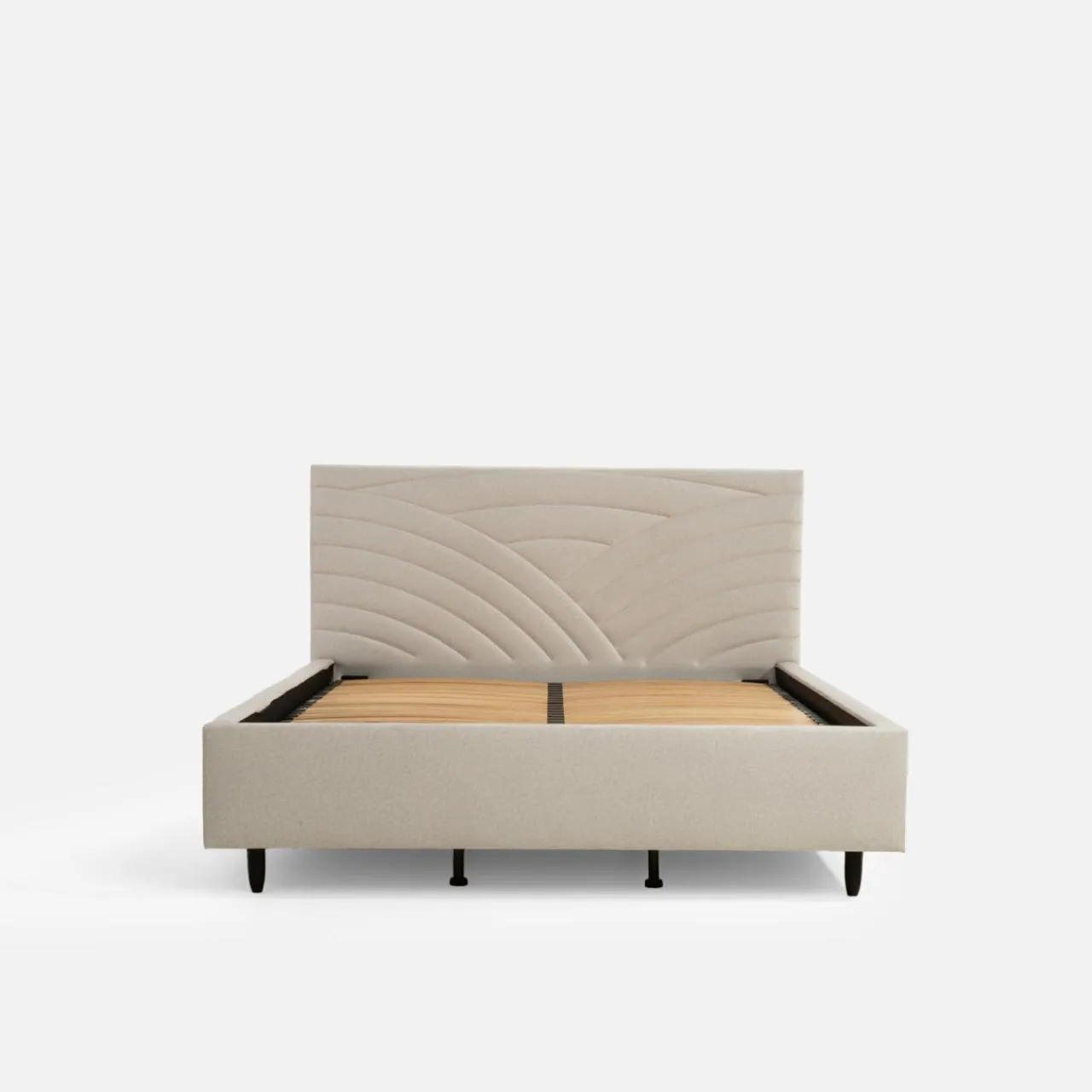 - Łóżko jest wyposażone w tapicerowaną ramę oraz stelaż, które stworzą komfortową powierzchnię spania dla 2 osób.