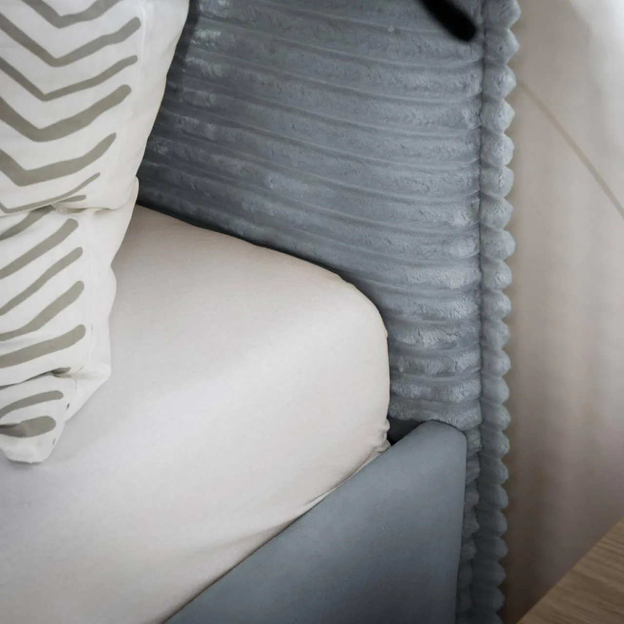 - Sztruksowe wezgłowie będzie idealnym miejscem do czytania książki – oprzyj się i zrelaksuj przy ulubionej lekturze.