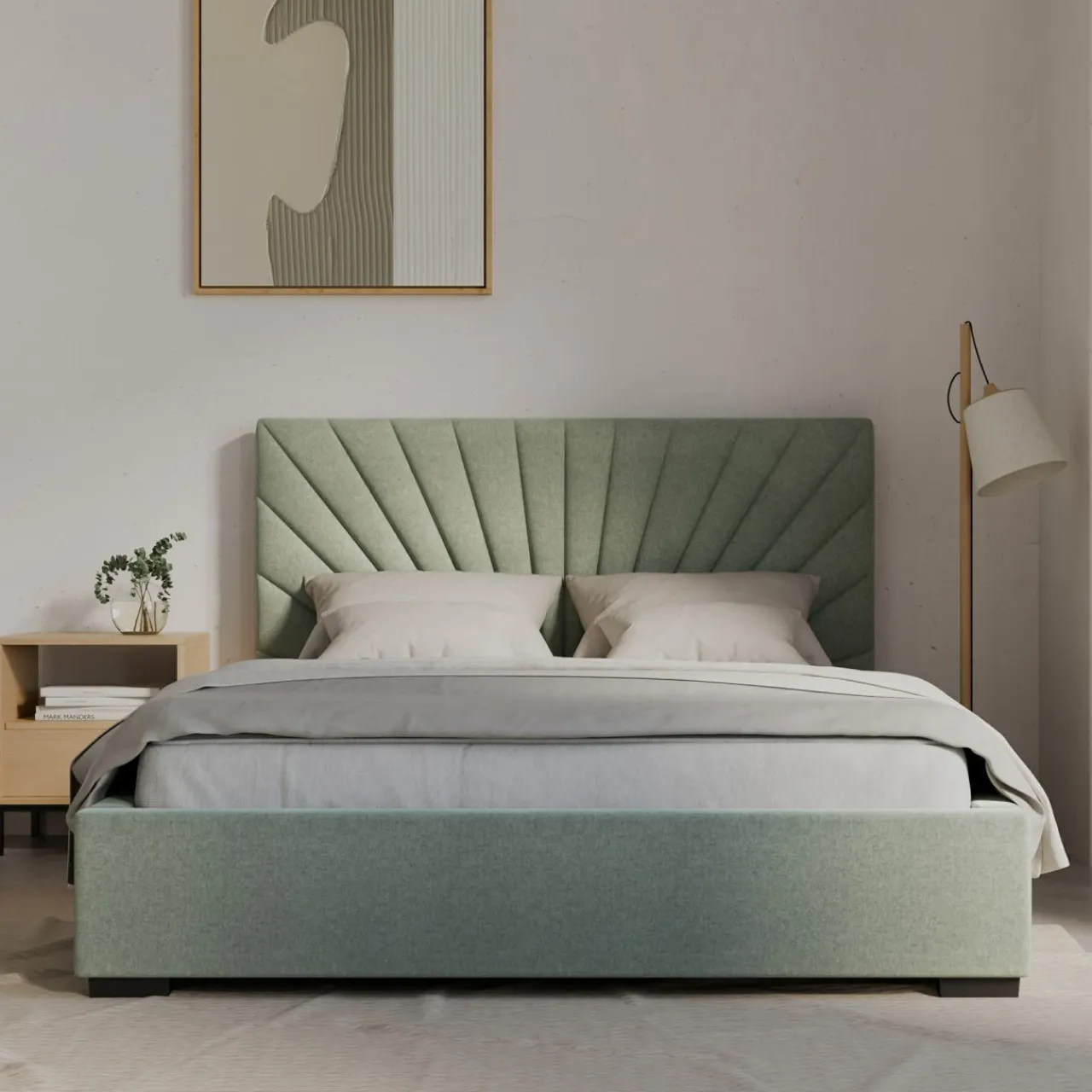 - Łóżko jest wyposażone w tapicerowaną ramę oraz stelaż, które stworzą komfortową powierzchnię spania dla 2 osób.