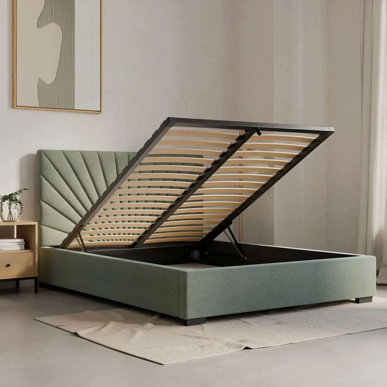 - Pojemnik pod stelażem da Ci przestrzeń, w której przechowasz pościel i inne domowe tekstylia. Dostęp do niego ułatwi Ci podnośnik gazowy.