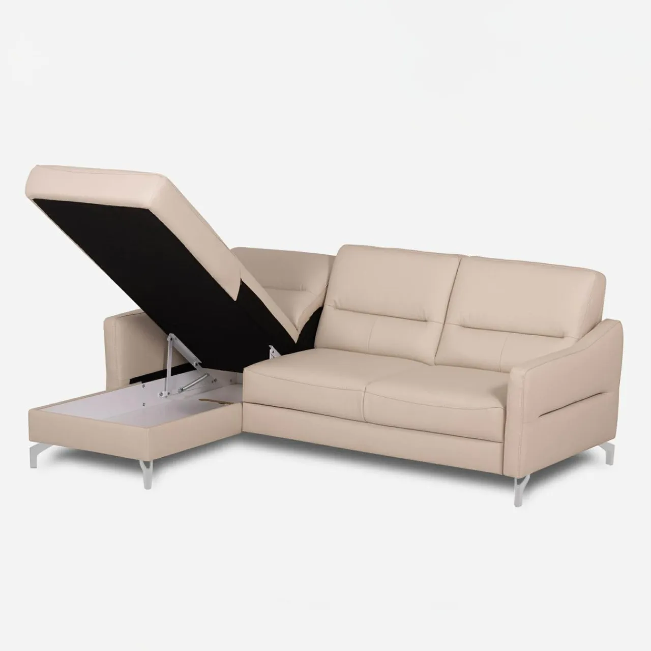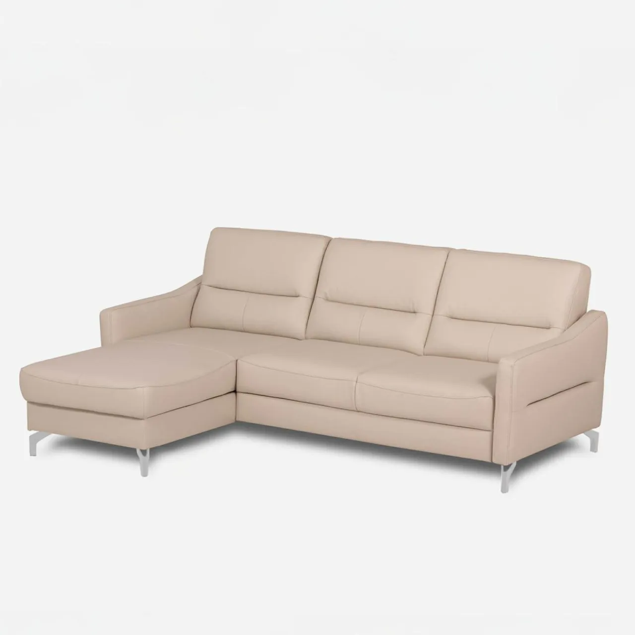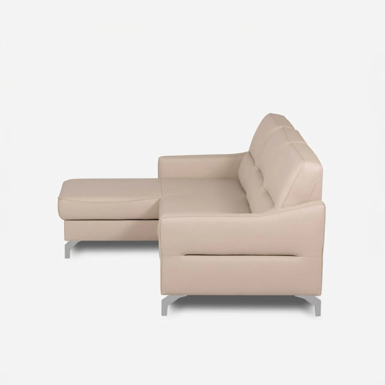 Narożnik FARO w jasnobeżowej tapicerce z chromowanymi nóżkami to idealny wybór dla osób, które cenią elegancję i funkcjonalność. Twój salon zyska świeżość i lekkość, a także komfortową przestrzeń do codziennego relaksu i spotkań z najbliższymi.