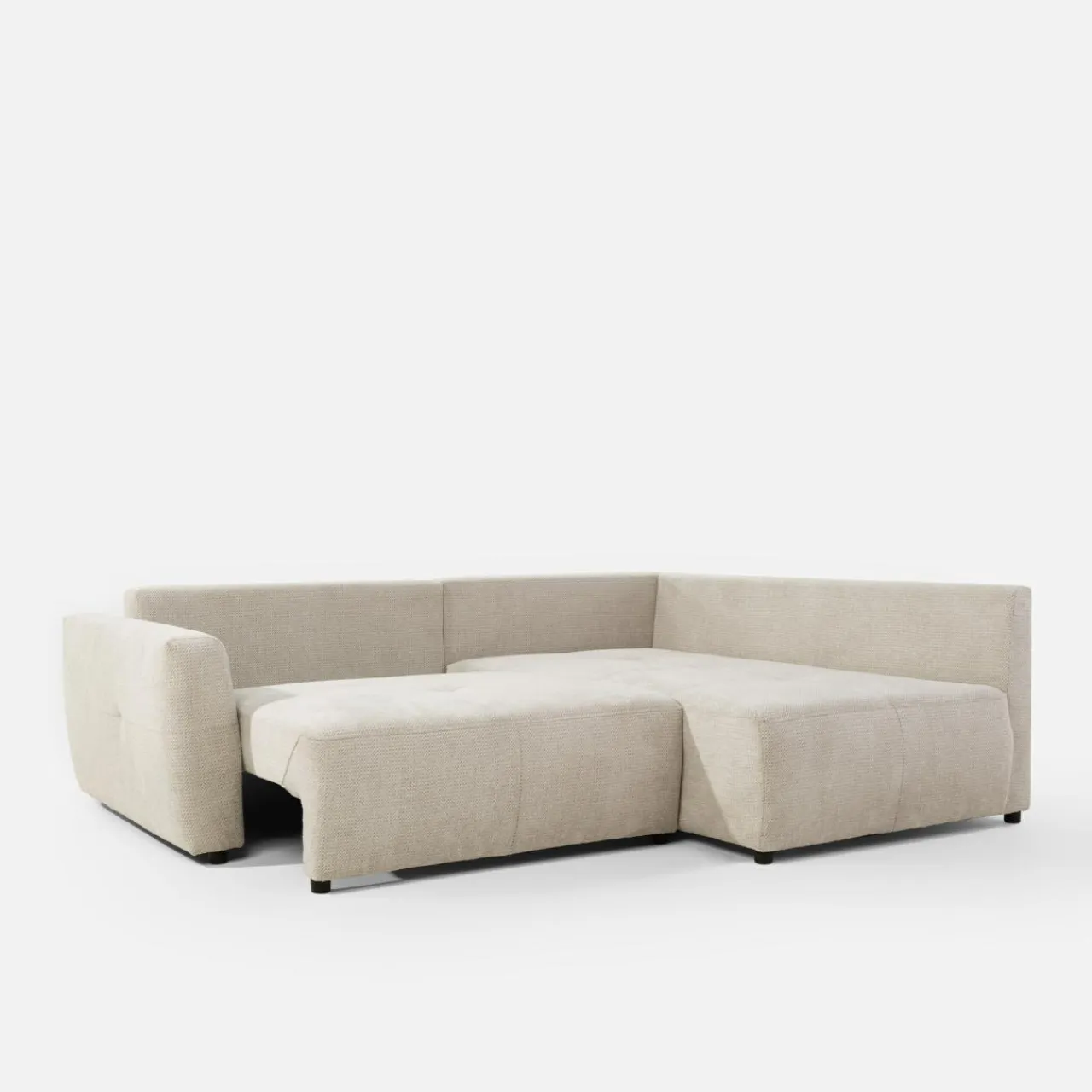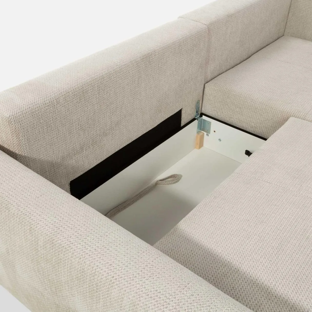 - Pojemnik pod siedziskiem to dodatkowa przestrzeń, którą wykorzystasz na pościel i inne domowe tekstylia. Dostęp do niego uzyskasz podczas rozkładania narożnika.