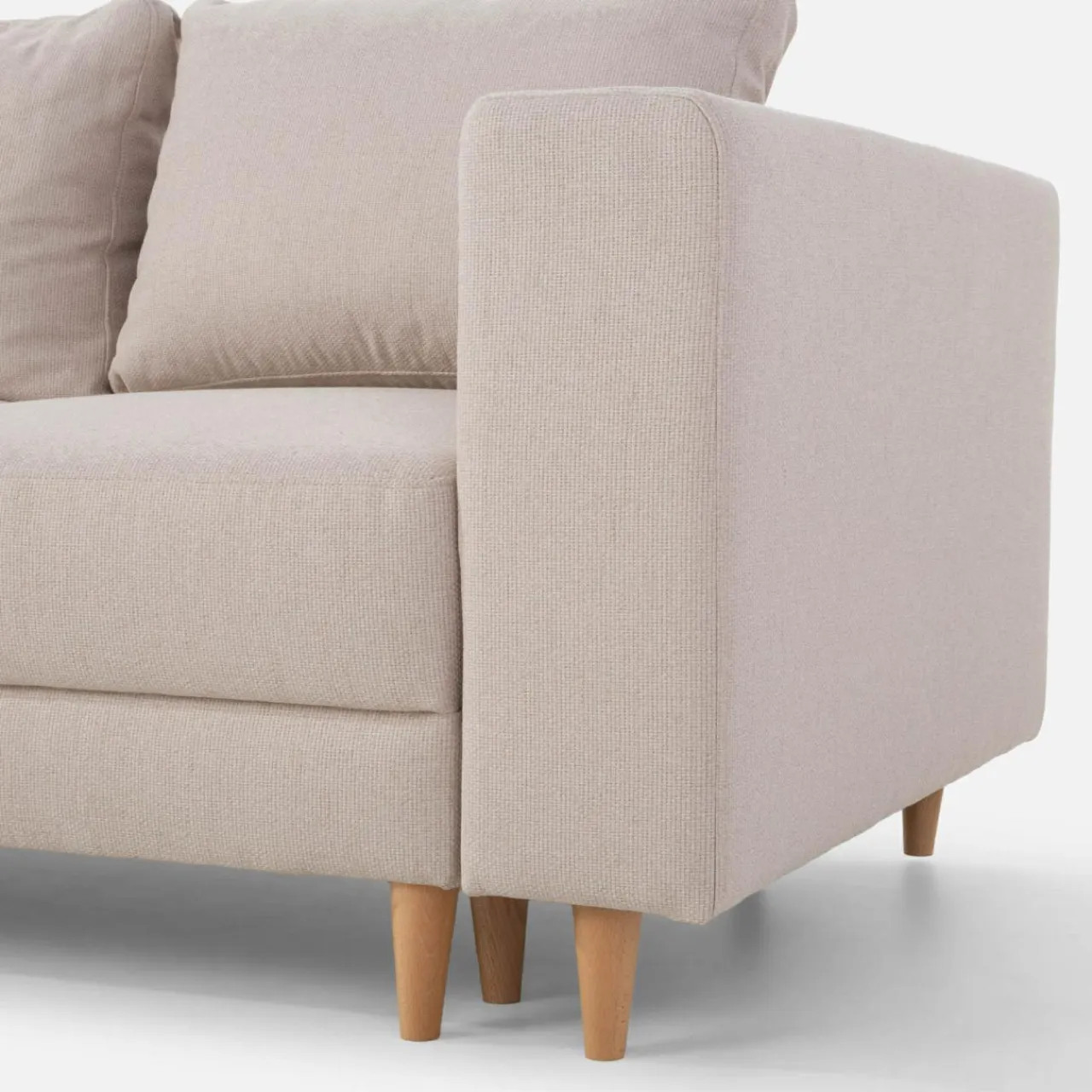 Prosta linia narożnika PERA wpisze się w wystrój nowoczesnego salonu. Wysokie nóżki z drewna nadadzą lekkości, dzięki czemu narożnik nie przytłoczy wnętrza.