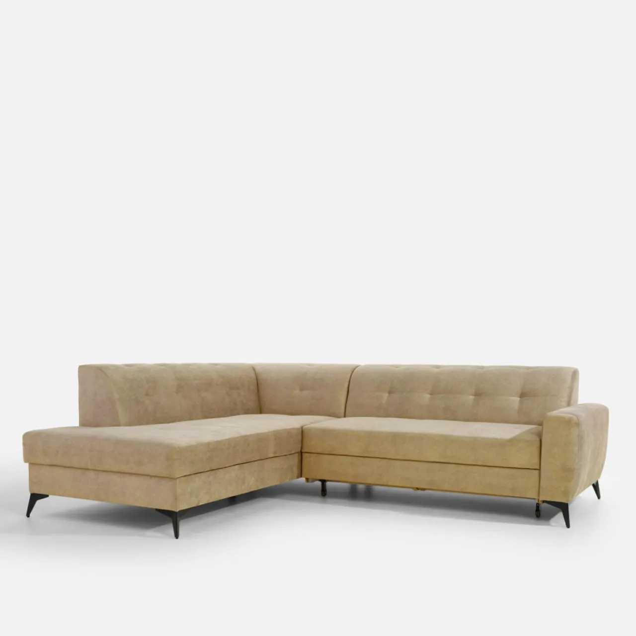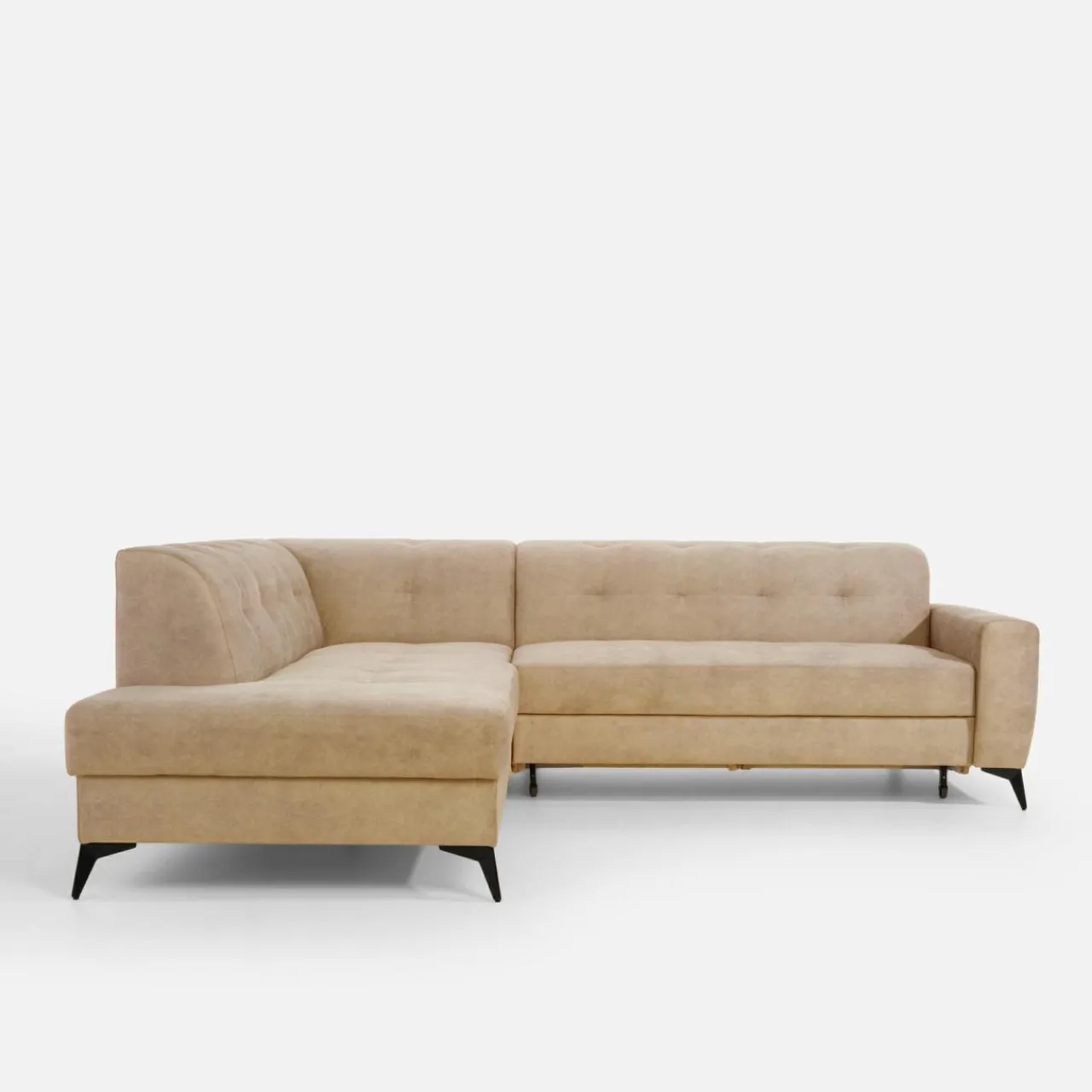 Stelaż pod siedziskiem wysuwamy i podnosimy za pomocą uchwytu. Mebel nie wymaga odsuwania od ściany. Idealny do okazjonalnego spania.