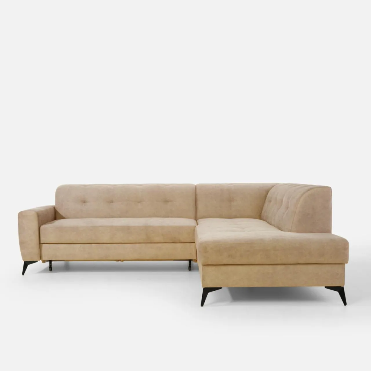 Stelaż pod siedziskiem wysuwamy i podnosimy za pomocą uchwytu. Mebel nie wymaga odsuwania od ściany. Idealny do okazjonalnego spania.