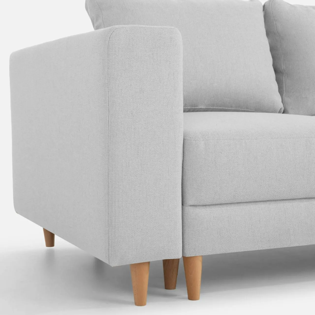 Prosta linia narożnika PERA wpisze się w wystrój nowoczesnego salonu. Wysokie nóżki z drewna nadadzą lekkości, dzięki czemu narożnik nie przytłoczy wnętrza.