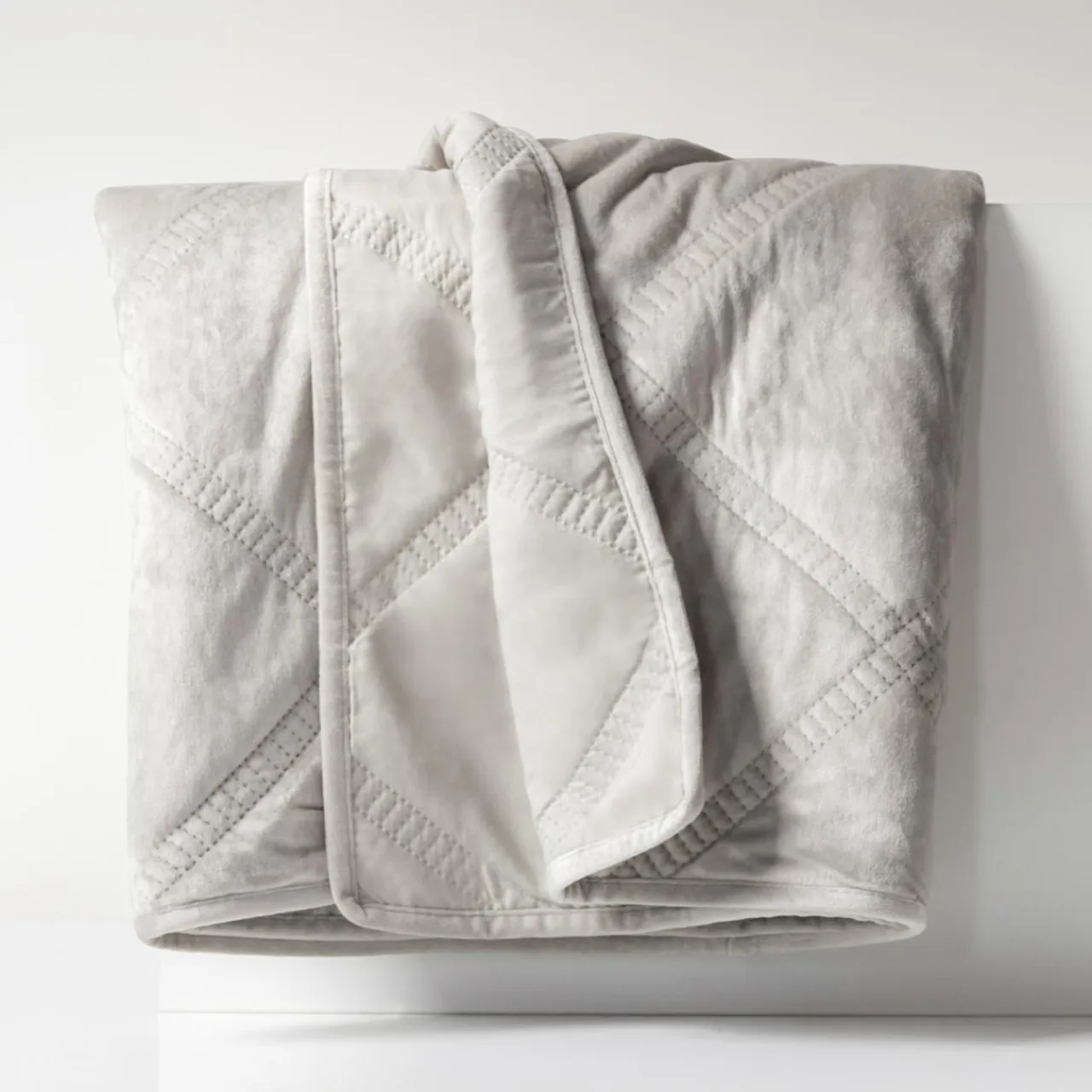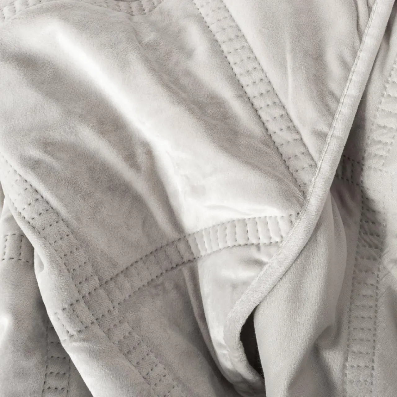 Jasnoszara narzuta na łóżko EMPORIA o welurowej strukturze podkreśli nowojorski styl wnętrza – pomoże utrzymać schludny wystrój w pokoju.