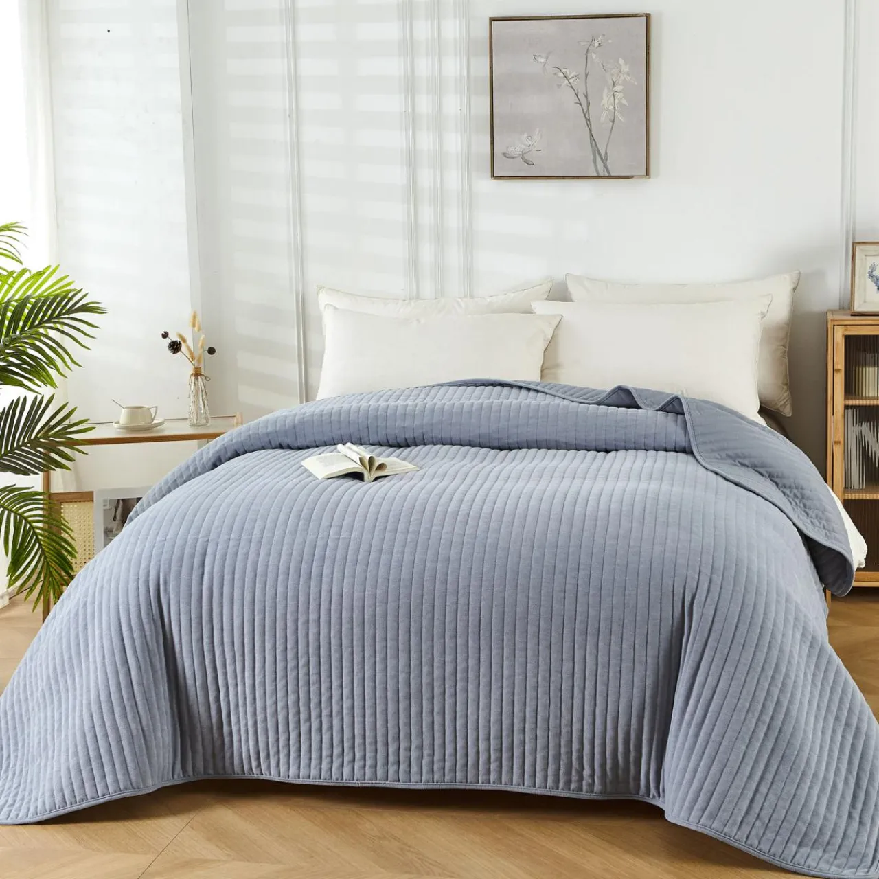 Szarą narzutę CASSIEN o wymiarach 220×240 cm położysz na dużym łóżku dla dwojga. Dopasujesz ją do białych i kremowych. Wpiszą się minimalistyczne lub skandynawskie aranżacje.