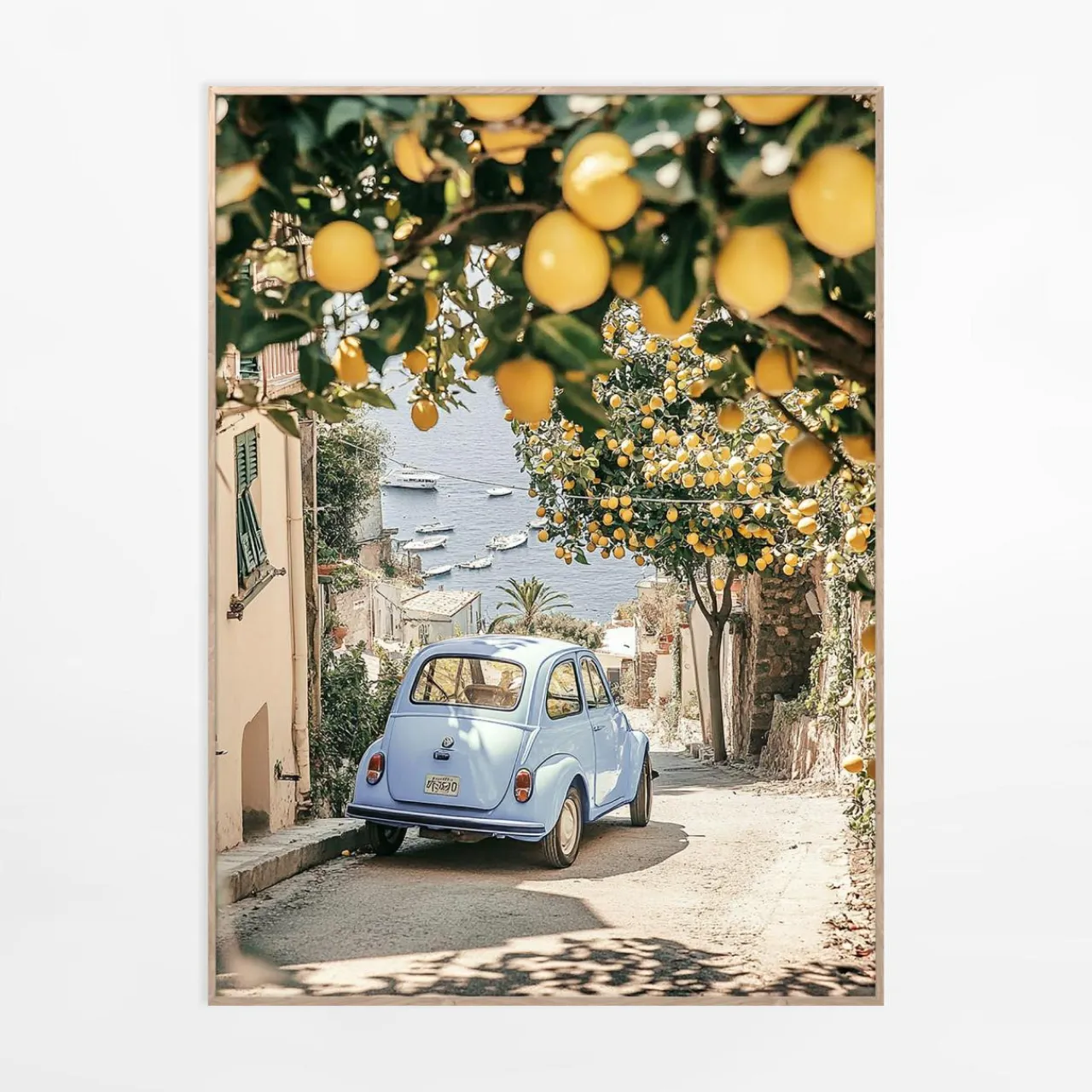 Wprowadź do swojego wnętrza w śródziemnomorski klimat – obraz VIA DEI LIMONI będzie jak włoski spacer po cytrynowej alei.