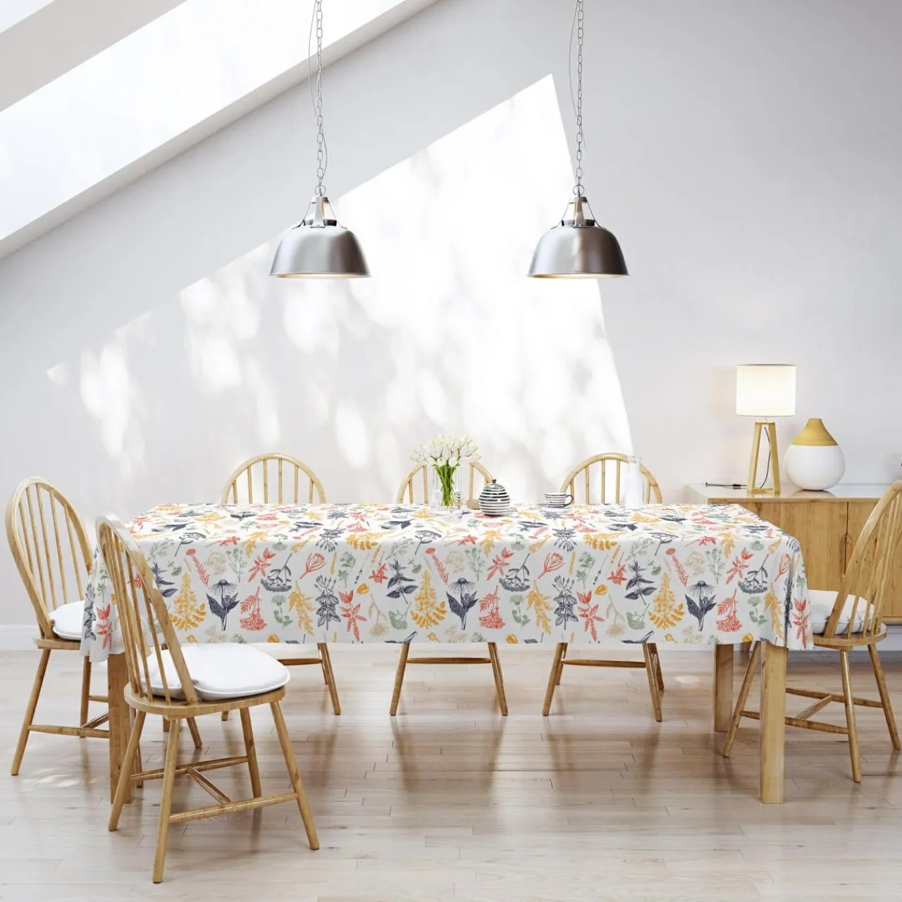 Marzysz o tym, aby Twoje wnętrze wypełnił ożywczy zapach kwietnej łąki? Wybierz bawełniany obrus HERBS. Wprowadzi powiew świeżości do Twojej jadalni.