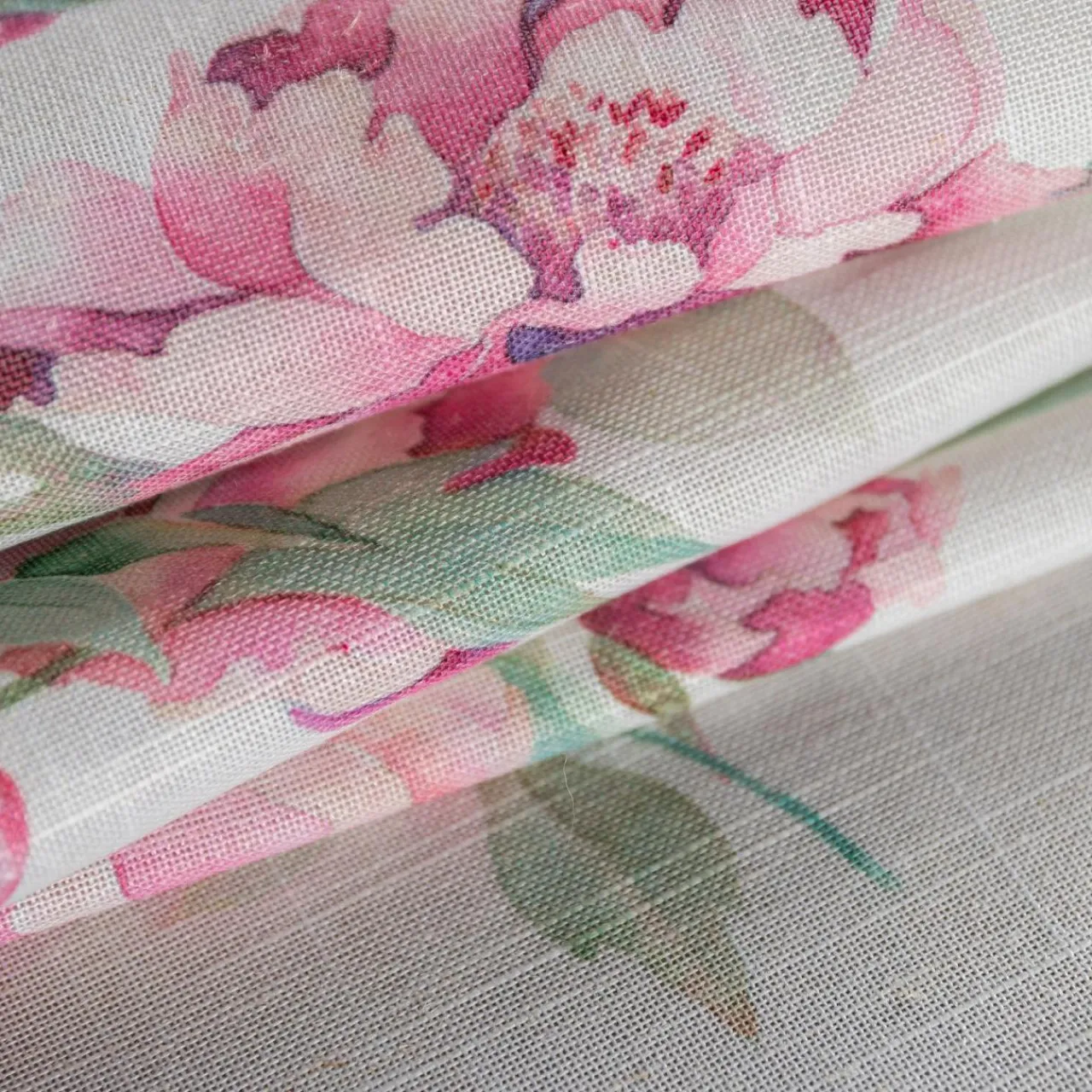 Obrus w różowe kwiaty GARDENIC zaakcentuje romantyczny wystrój wnętrza.
