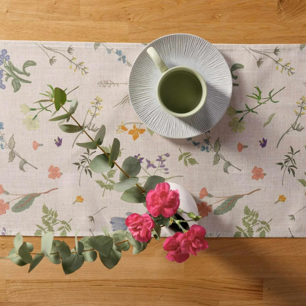 Dodaj odrobinę natury do swojego stołu dzięki uroczemu obrusowi w polne kwiaty. Delikatny wzór inspirowany letnią łąką nadaje wnętrzu ciepła oraz przytulności, a materiał z jakiego wykonano obrus zapewnia trwałość i wygodę użytkowania. Obrus łączy funkcjonalność z pięknem natury, nadając każdemu wnętrzu wyjątkowy charakter.