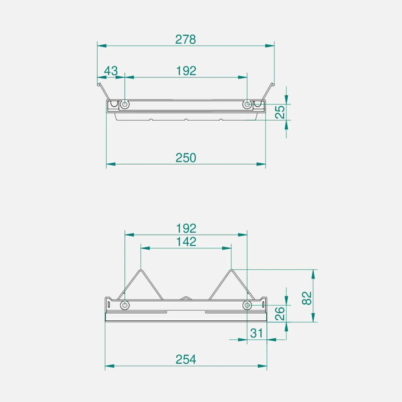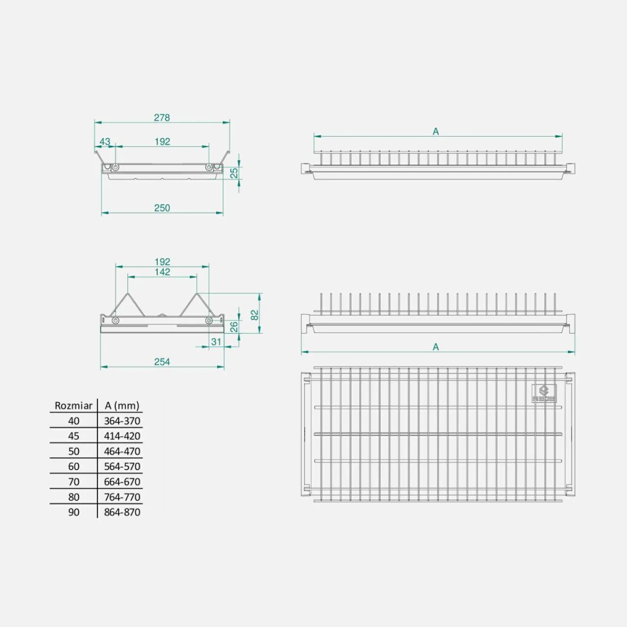 - Górna część suszarki, przystosowana jest pod płytę i grubości 16-18 mm, natomiast dolna posiada stelaż z regulacją głębokości oraz zaczepem na plecy.
