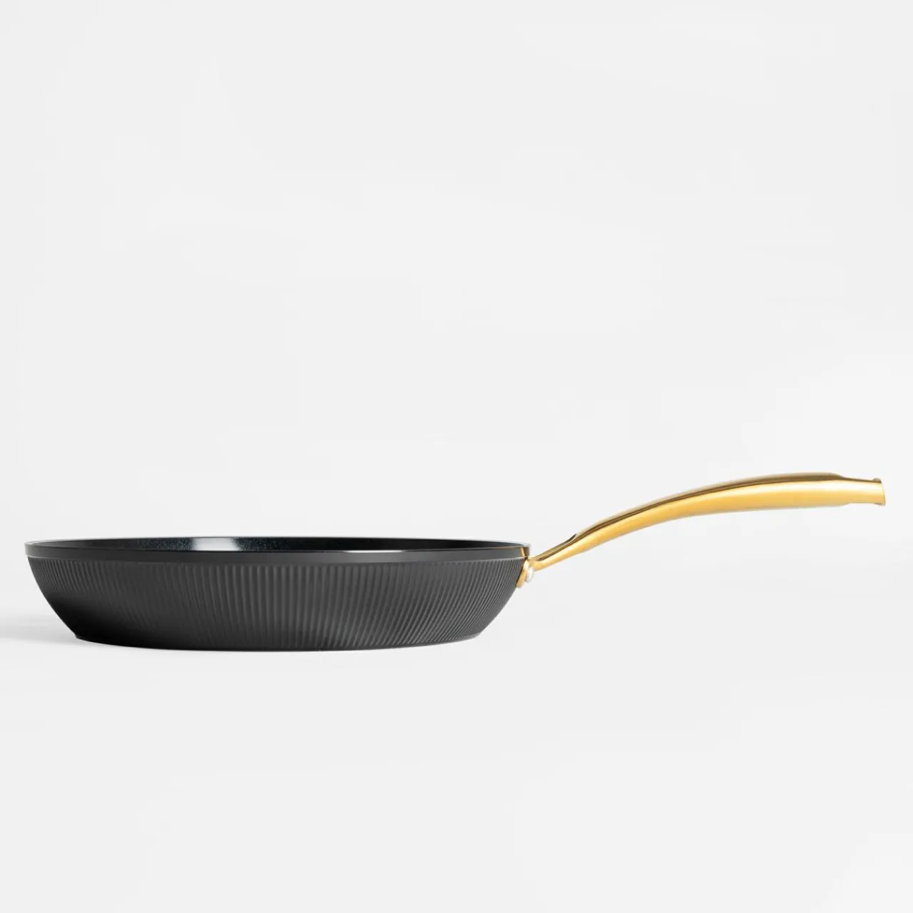 - Złoty uchwyt ze stali nierdzewnej z powłoką PVD nadaje jej elegancki wygląd. Podczas podnoszenia nagrzanego naczynia, używaj rękawic ochronnych.