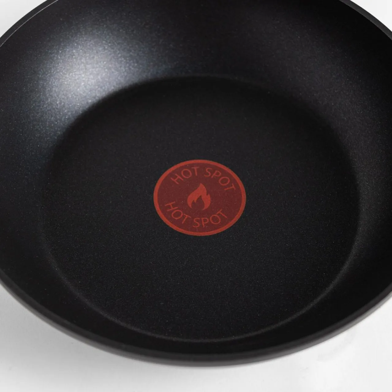 - Na środku naczynia znajduje się czerwony wskaźnik temperatury, który zasygnalizuje, że patelnia jest gotowa do smażenia.