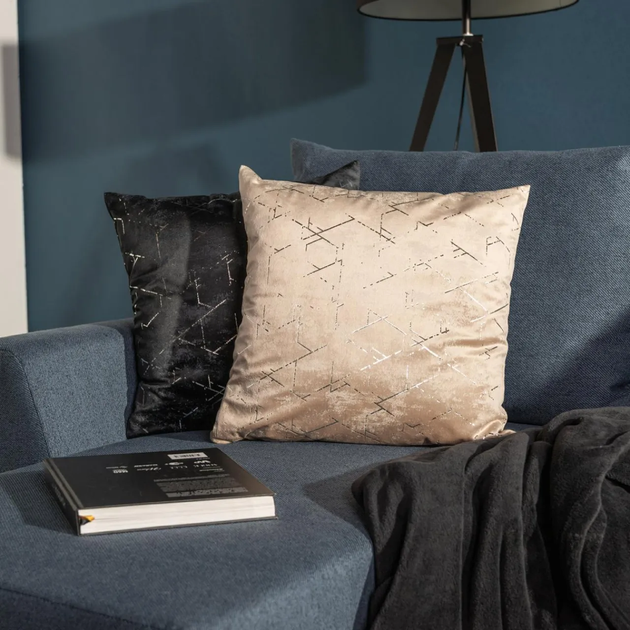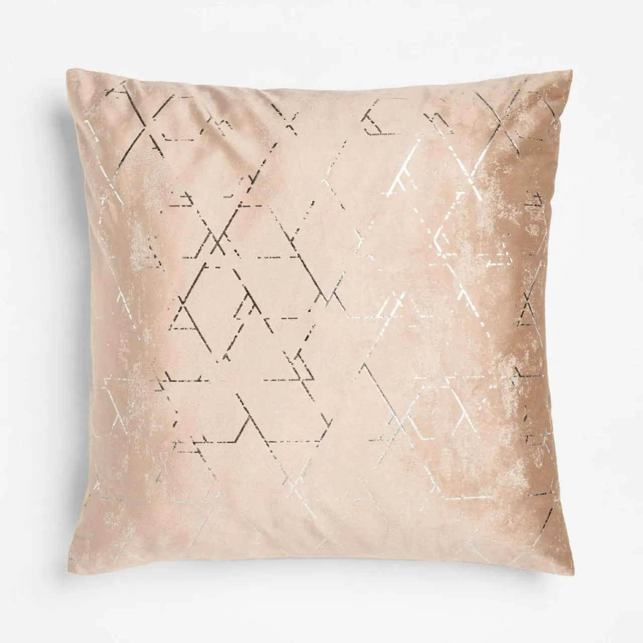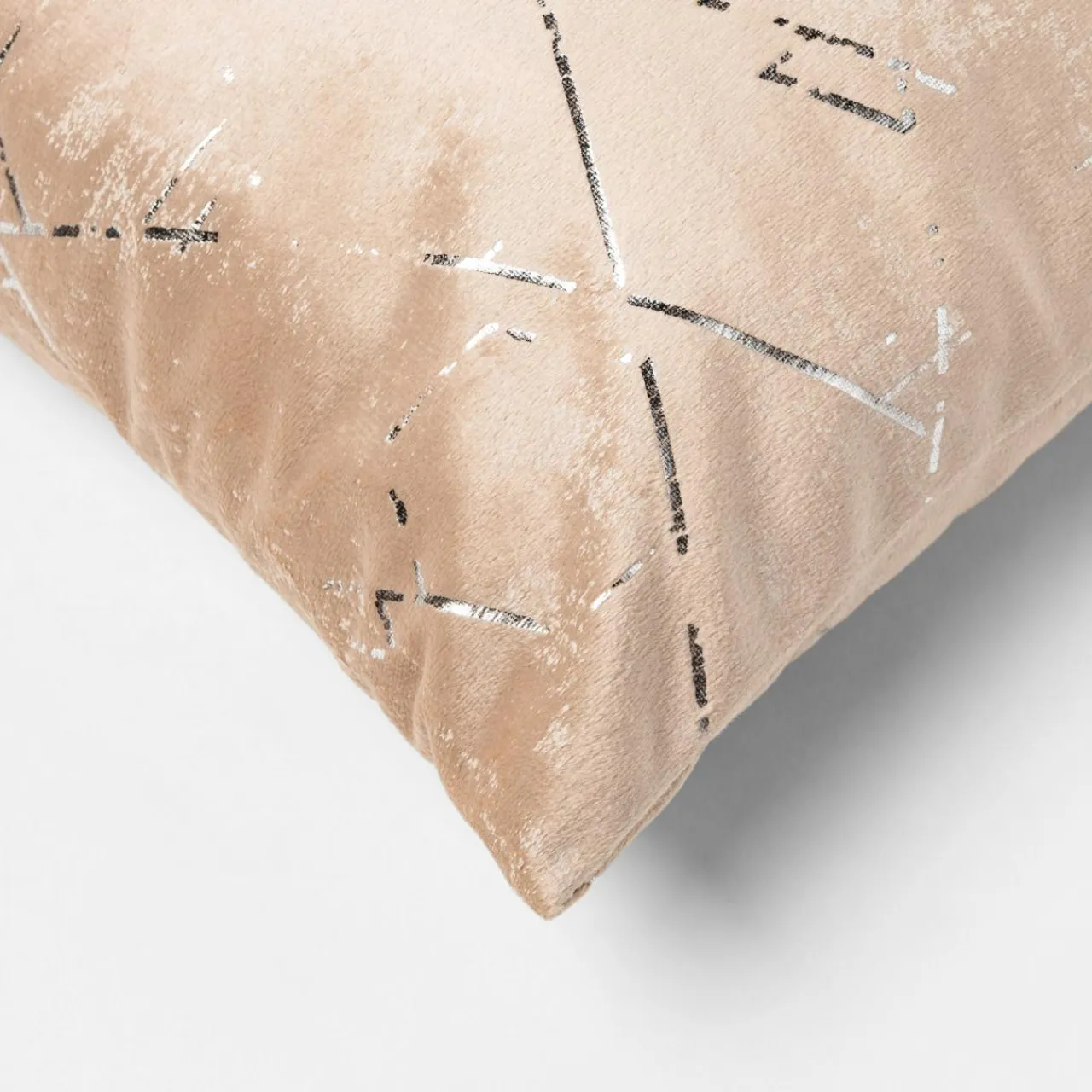 Beżowa poduszka NORAH posiada srebrny, połyskujący wzór, który przyciągnie wzrok.