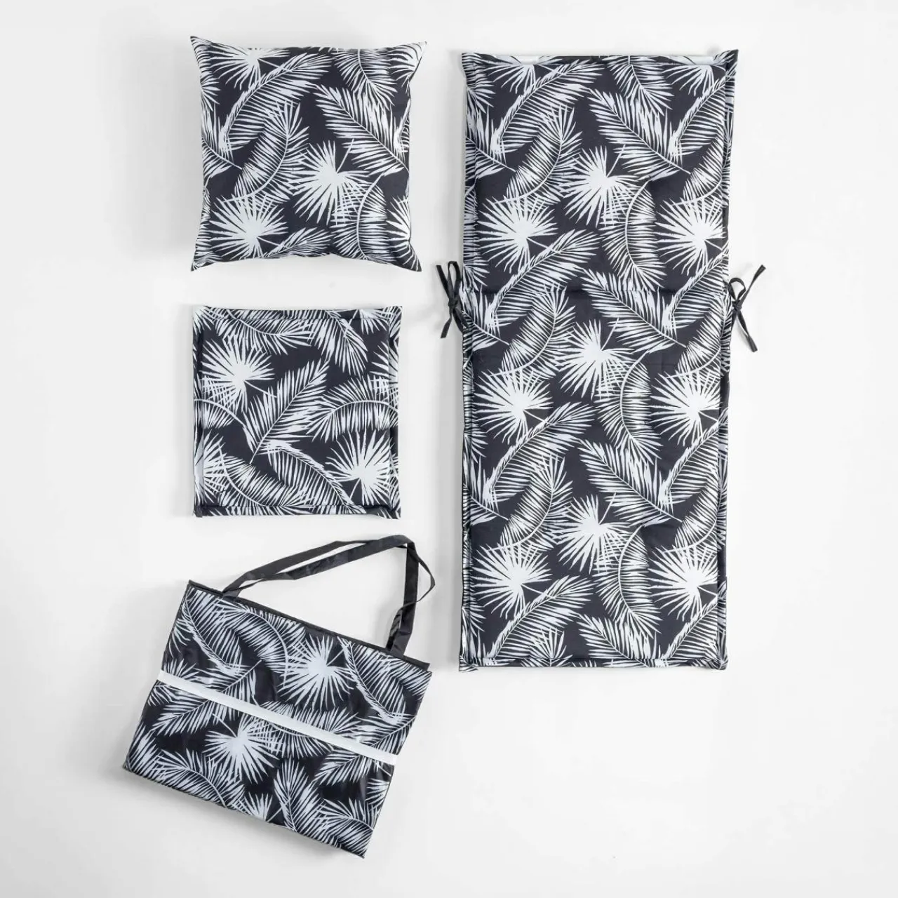 - Wzór z palmowymi liśćmi przeniesie Cię w egzotyczne, wakacyjne klimaty, a klasyczne zestawienie czerni i bieli przyciągnie wzrok i doda przestrzeni szyku.