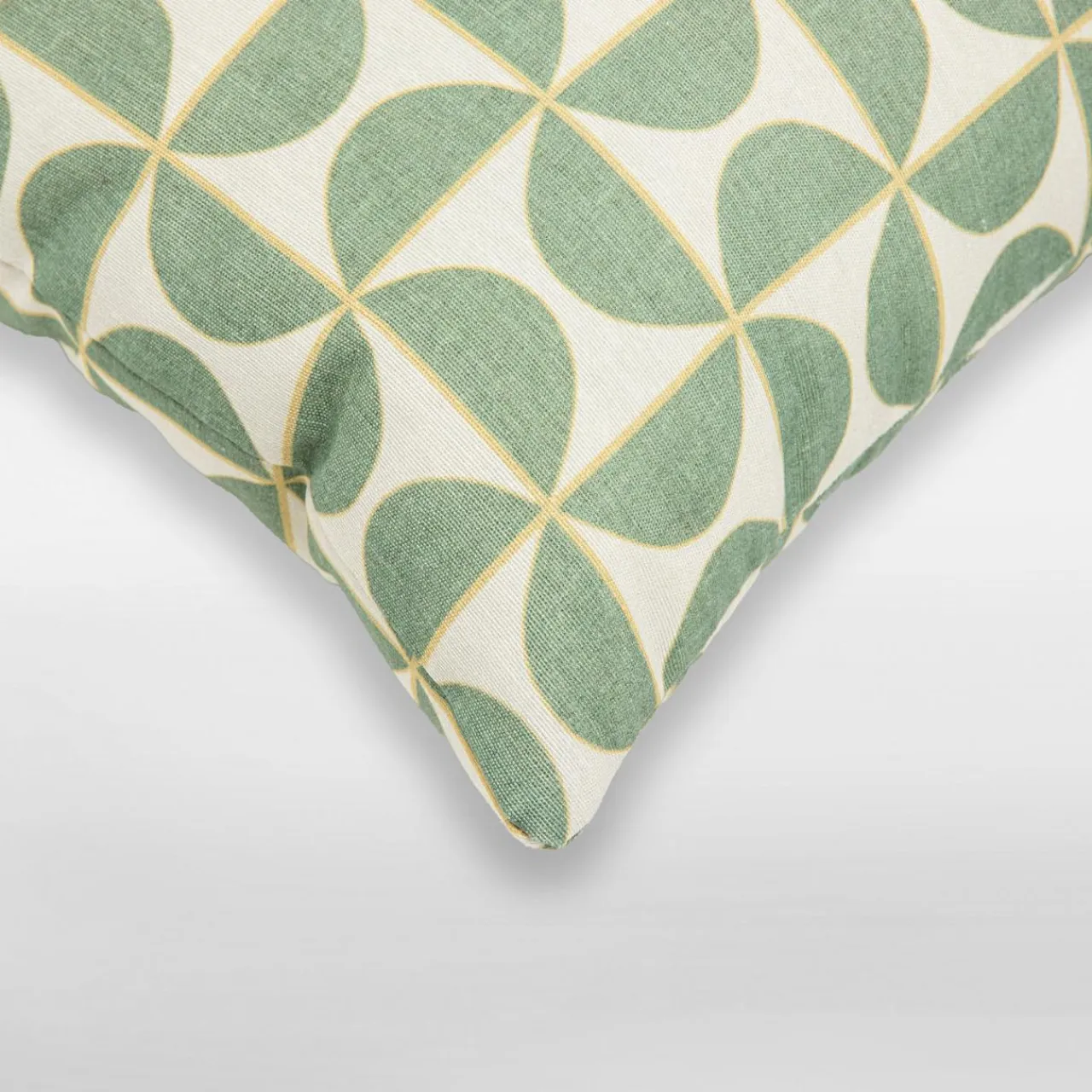 Kolekcja poduszek PALEO w geometryczne, kolorowe wzory uatrakcyjni wnętrze i przyciągnie wzrok. Zielone półkola tworzą dynamiczną kompozycję, która podkreśli modne aranżacje.