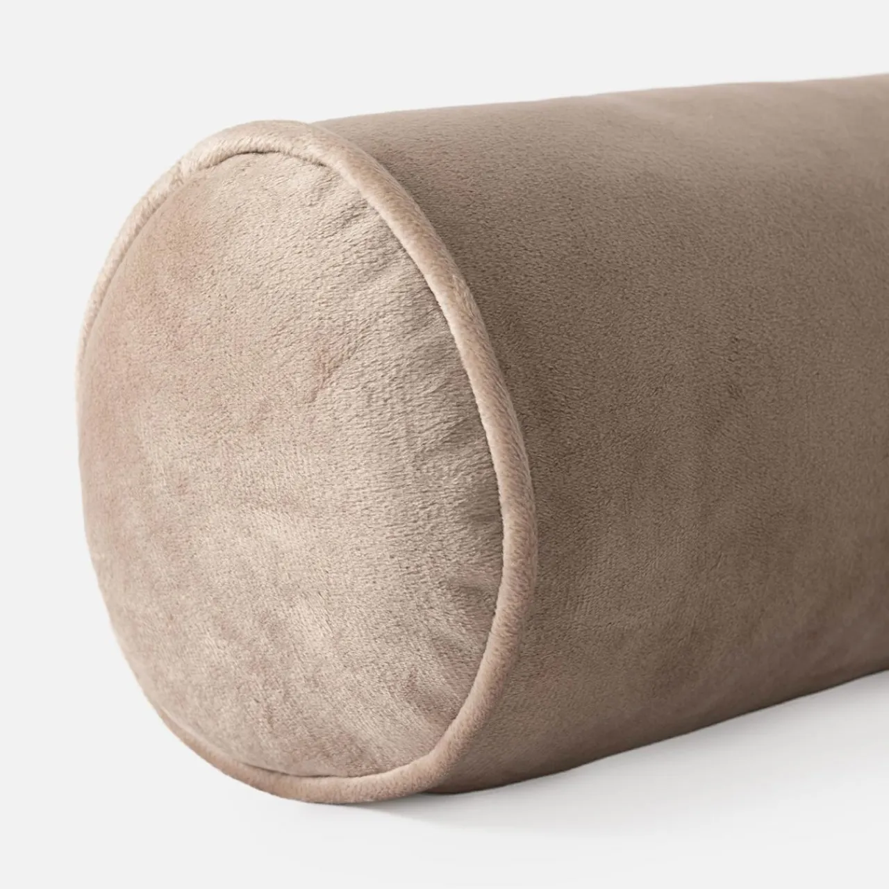 Dekoracyjny wałek z welurowego materiału jest miękki w dotyku.