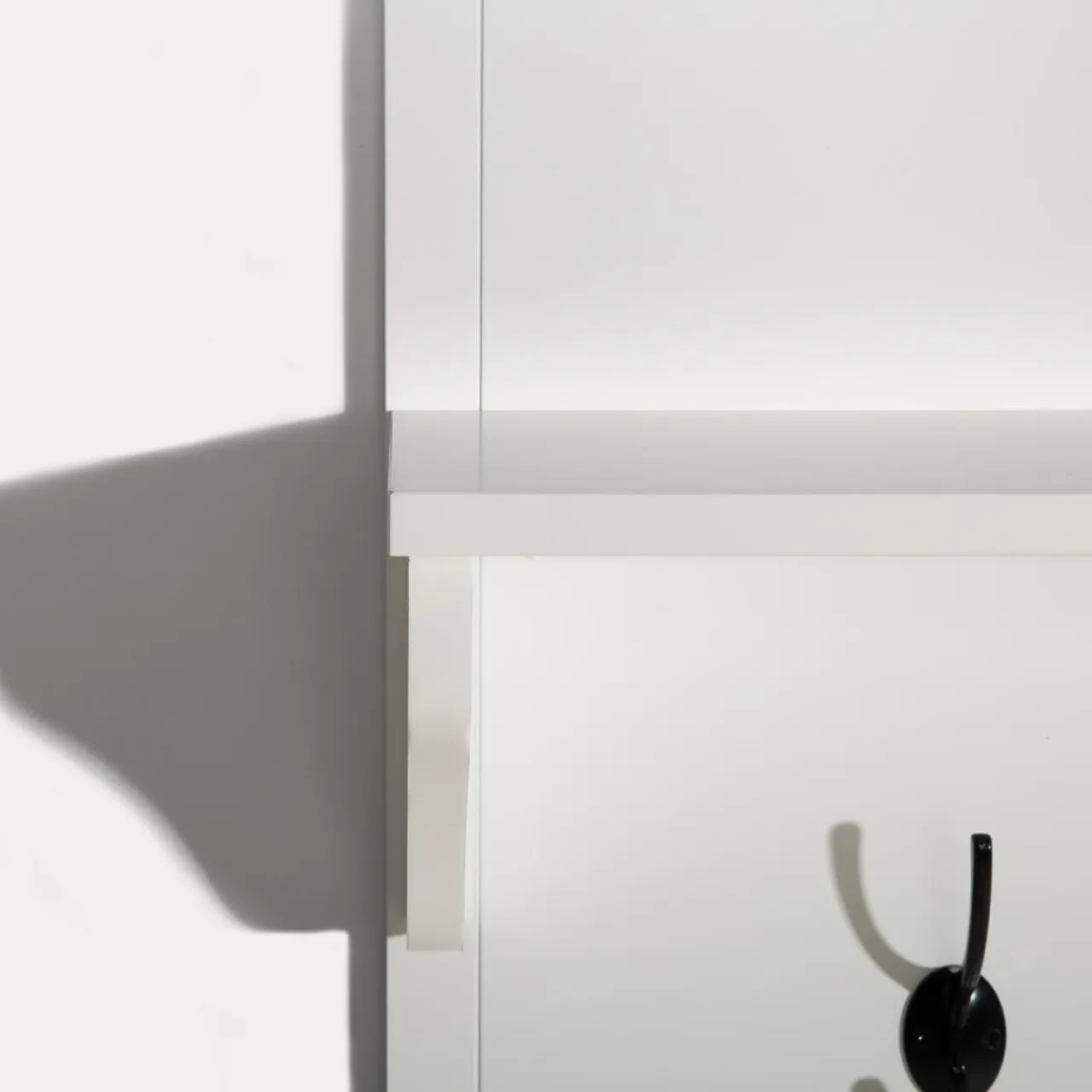 Faliste wykończenie bocznych ścianek i biały kolor sprawiają, że półka z wieszakami świetnie sprawdzi się w skandynawskim wnętrzu.