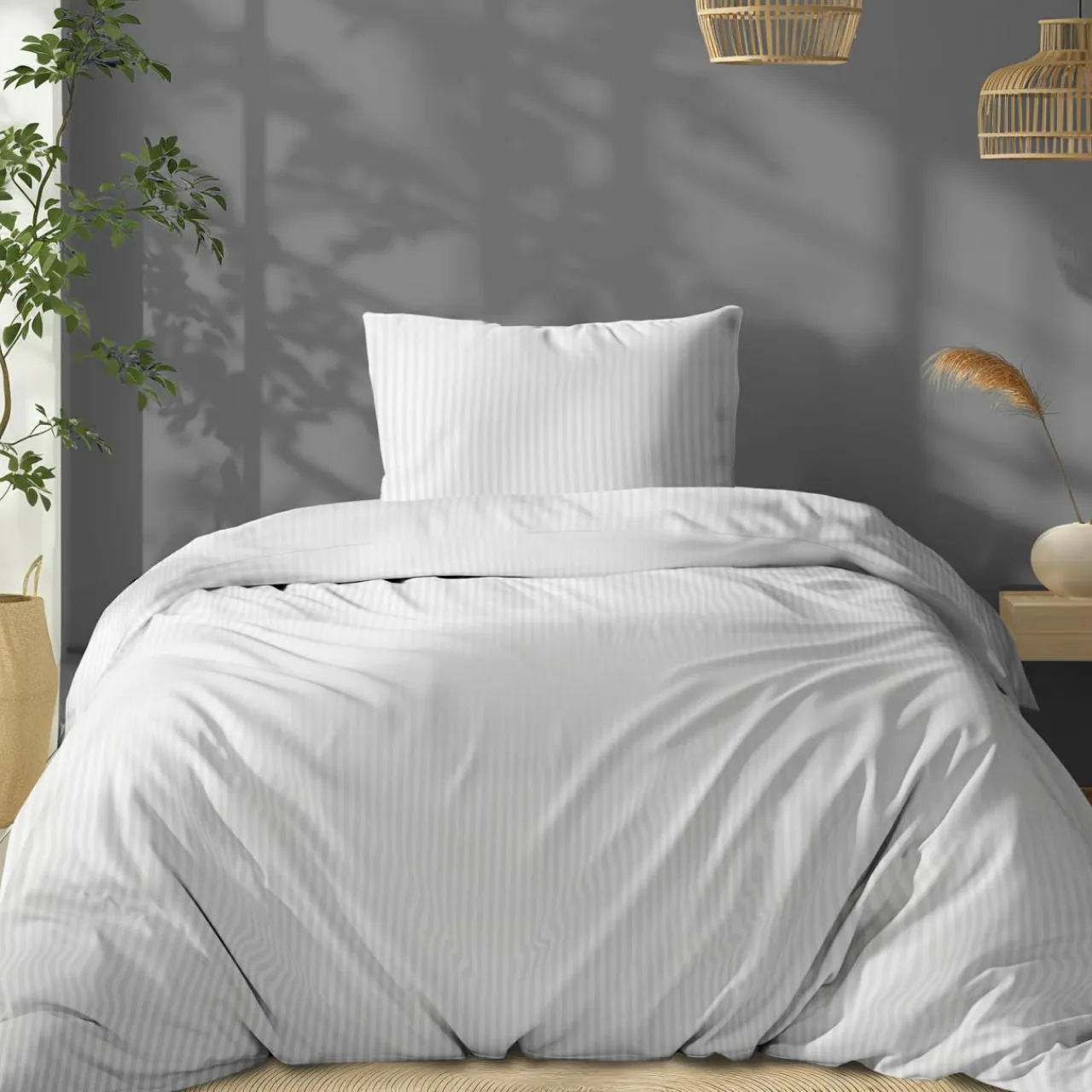 - Komplet pościeli z kolekcji PURE w białym kolorze to prawdziwy skarb dla każdego miłośnika minimalizmu i prostoty. Uniwersalna kolorystyka i subtelne pasy pozwalają Ci na dopasowanie jej do niemal każdej aranżacji.