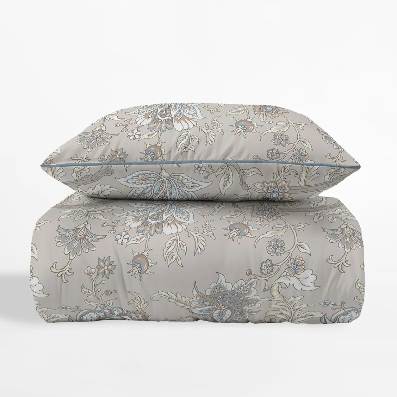 - Pościel została wykonana z perkalu – bawełny o gęstym splocie, który zwiększa wytrzymałość tkaniny i nadaje jej przyjemnie gładką fakturę.
