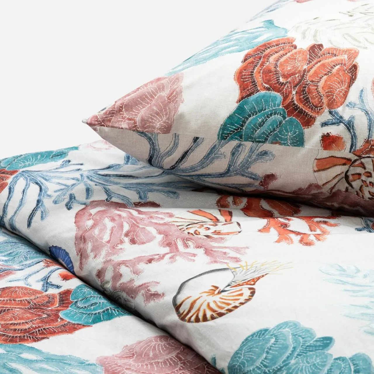 Pościeli MARINE jest uszyta w całości z bawełny – przyjemna w dotyku i dobrze przepuszcza powietrze.