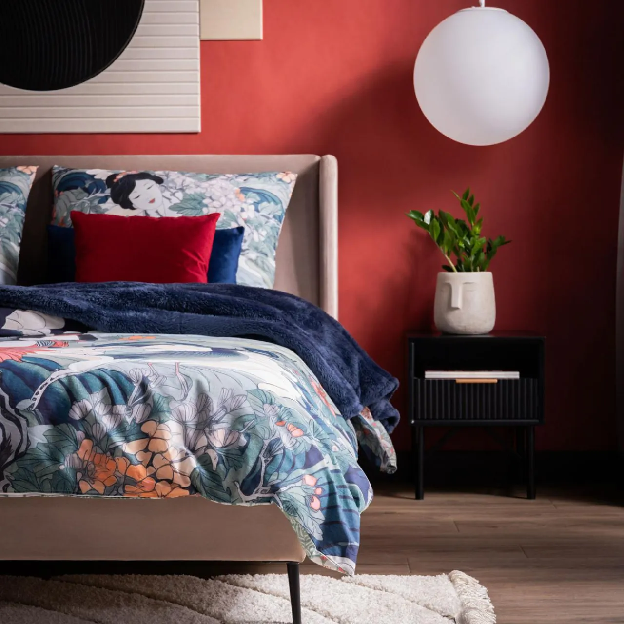 Bawełniana pościel z kolekcji ORIENT z barwnym wzorem przykuje uwagę. Tkanina jest przewiewna i przyjemna w dotyku. Nadaje się dla wrażliwej skóry.