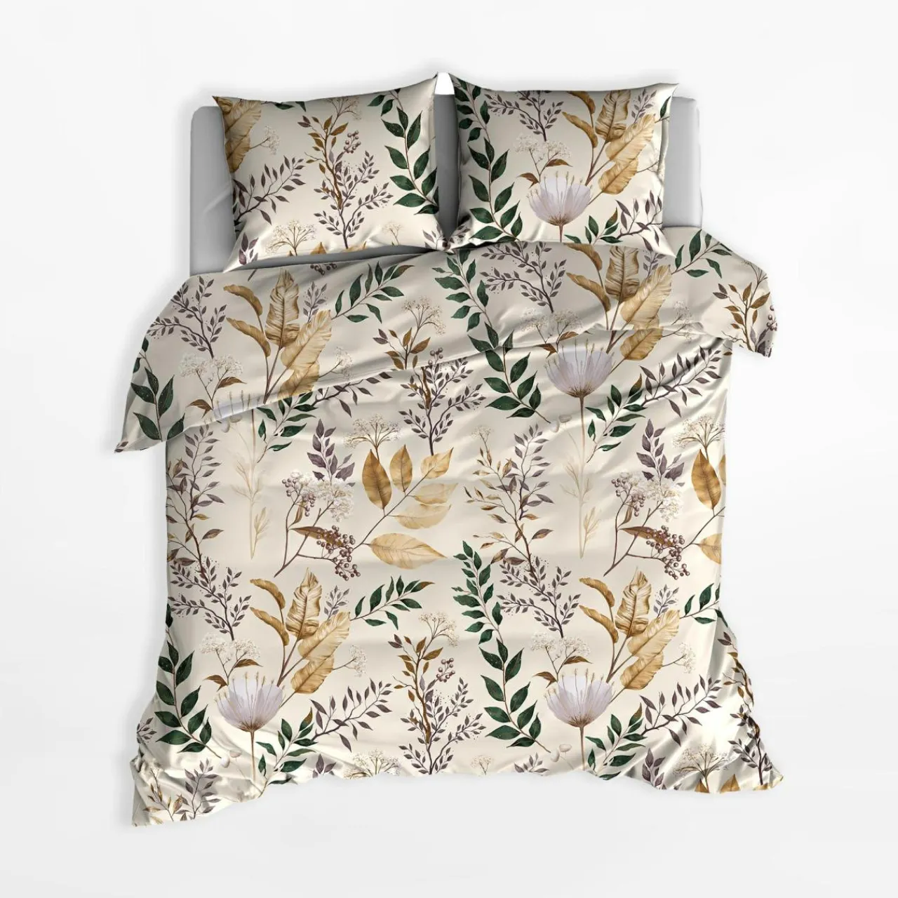 Beżowa pościel z motywem polany doda aranżacji przytulnego akcentu. Pomoże podkreślić ciepłą, relaksującą przestrzeń.